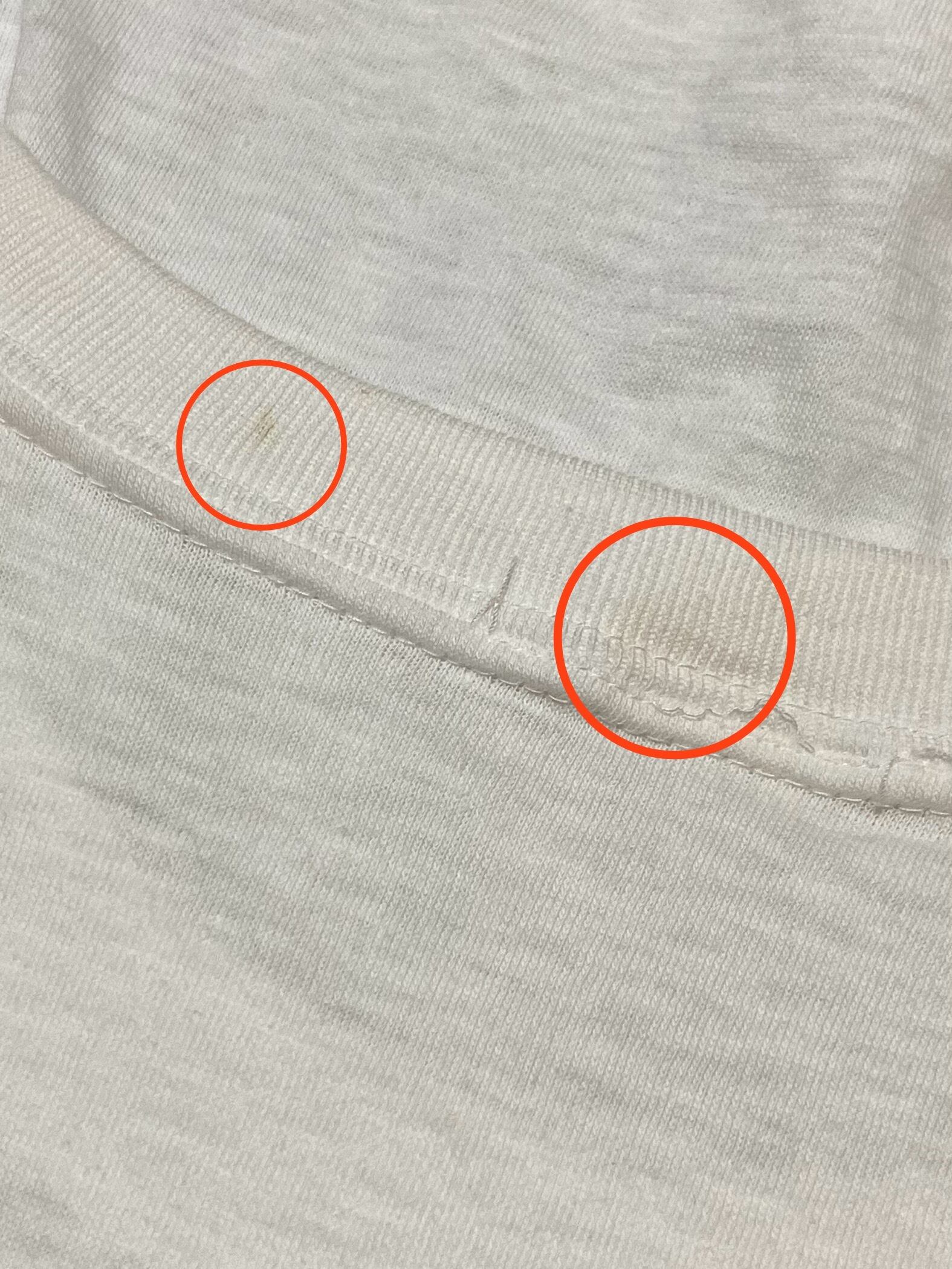 ☆コンディション:首元後ろと左脇付近に薄ら小さなシミがございます(写真18-19枚目)