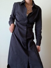 90s long shirt black dress / MADE IN TAIWAN / 古着 ヴィンテージ ロングワンピース シャツワンピース