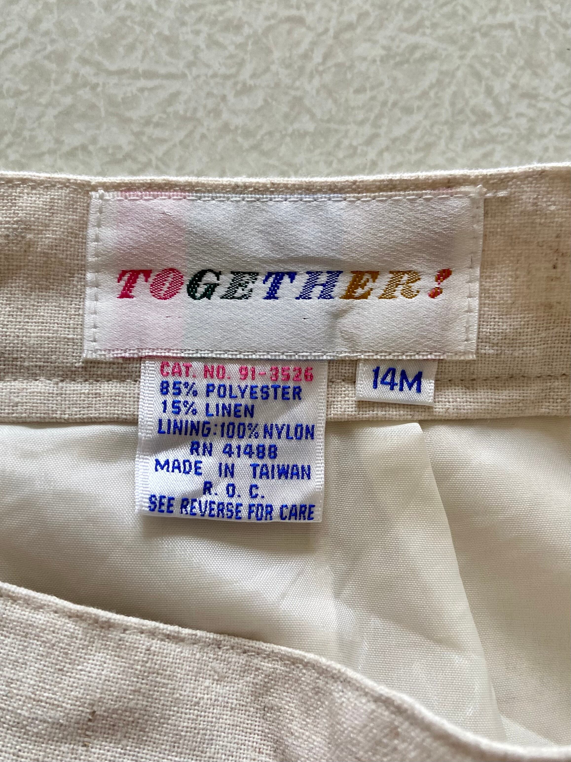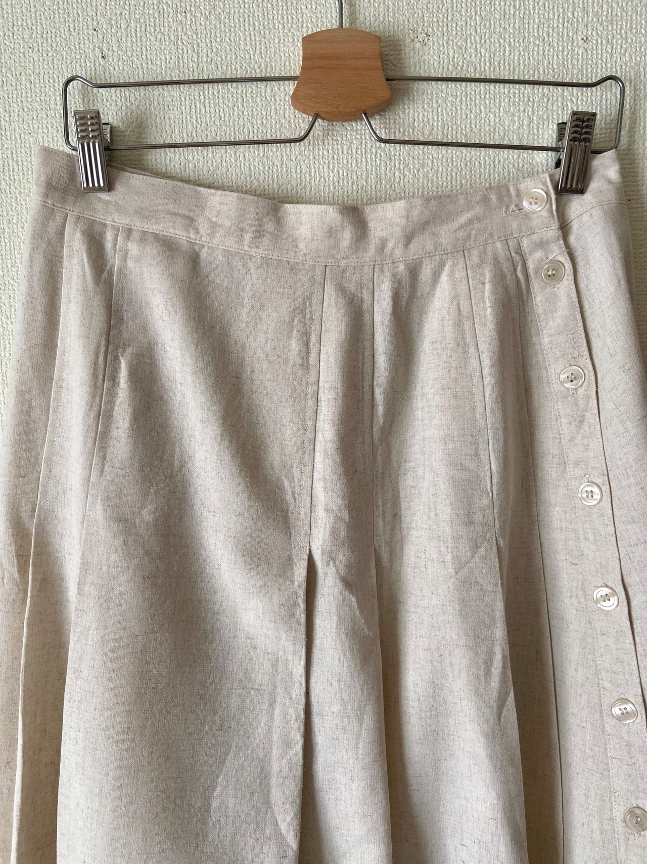 80s "TOGETHER!" button design linen pleats skirt / MADE IN TAIWAN R.O.C / 古着 ヴィンテージ リネンスカート プリーツスカート
