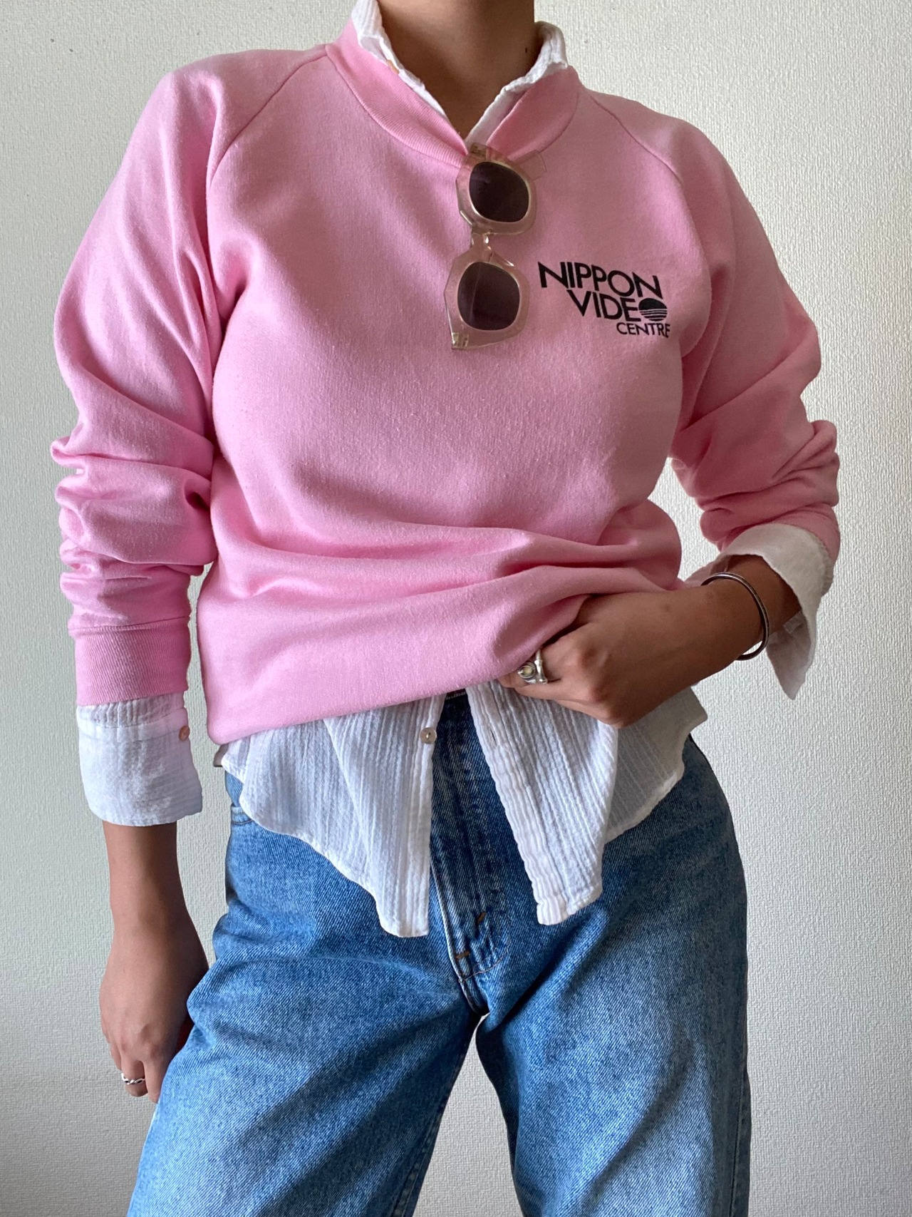 80sらしいパステルピンクが目を惹くラグランスウェット。海外製のボディに『NIPPON』のプリントが良い感じです◎