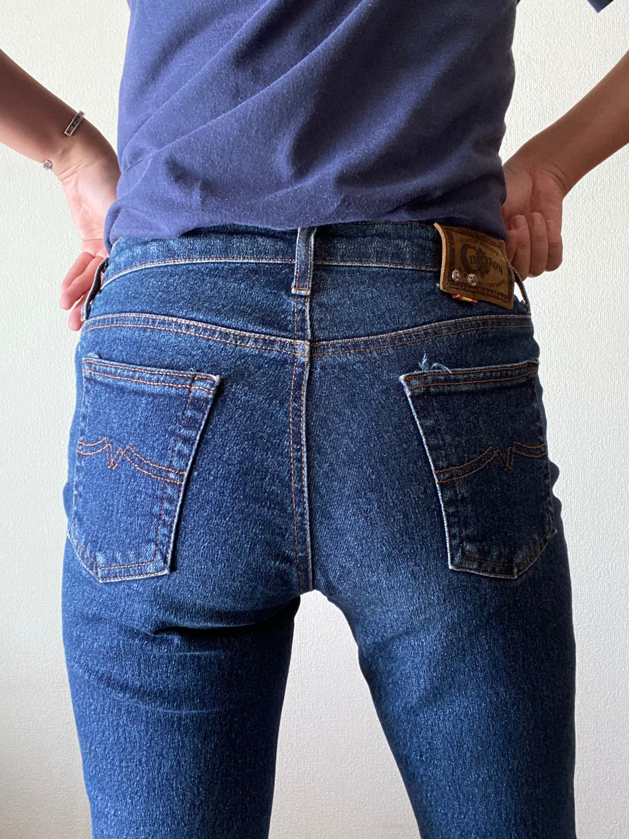 ウエスト66-74cm 股上23cm 股下77cm わたり23cm ヒップ周り92cm 裾幅21cm(ストレッチが効いてるので伸縮性ございます)