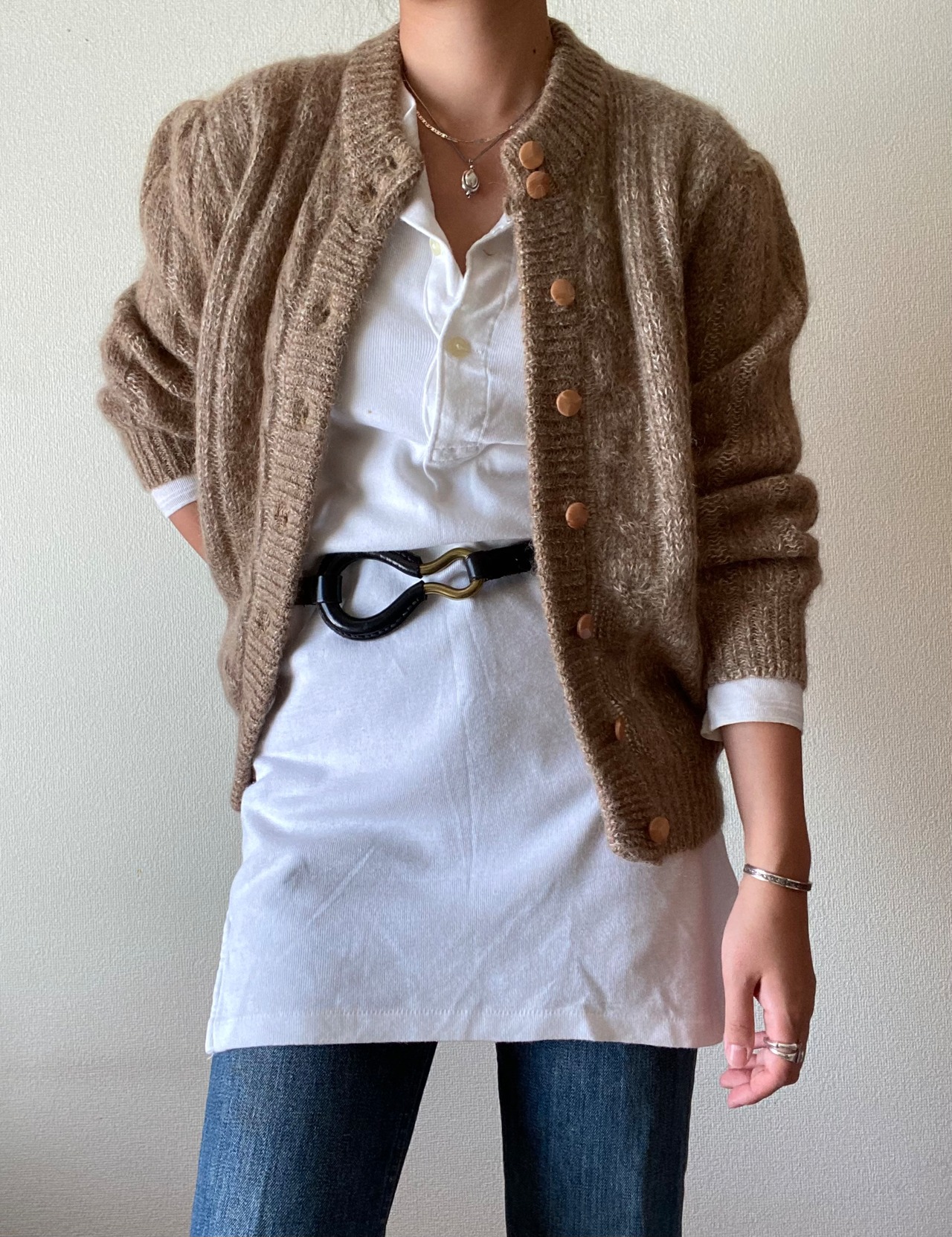 80s Vintage wool knit button cardigan / 古着 ヴィンテージ ウールニット カーディガン
