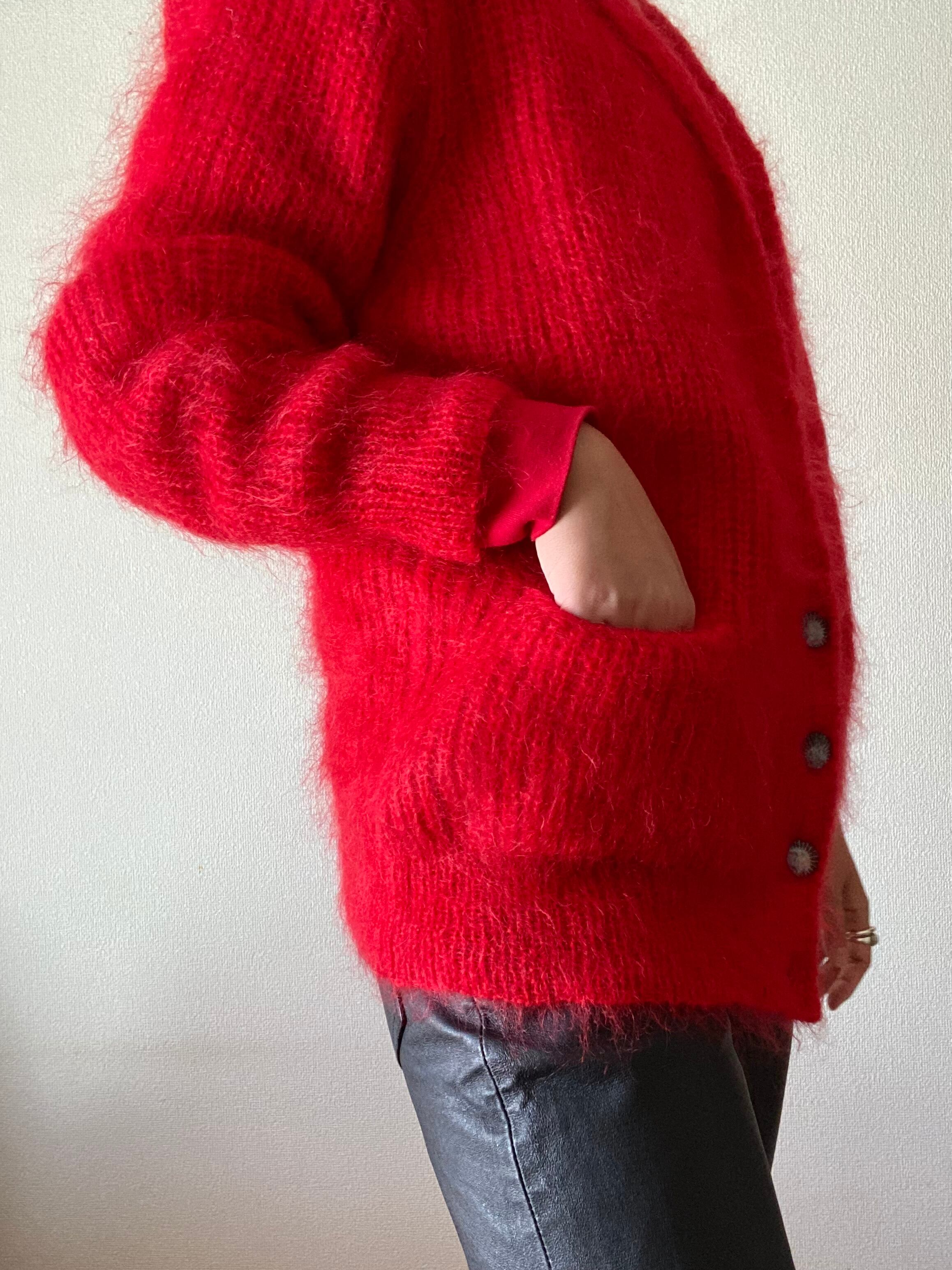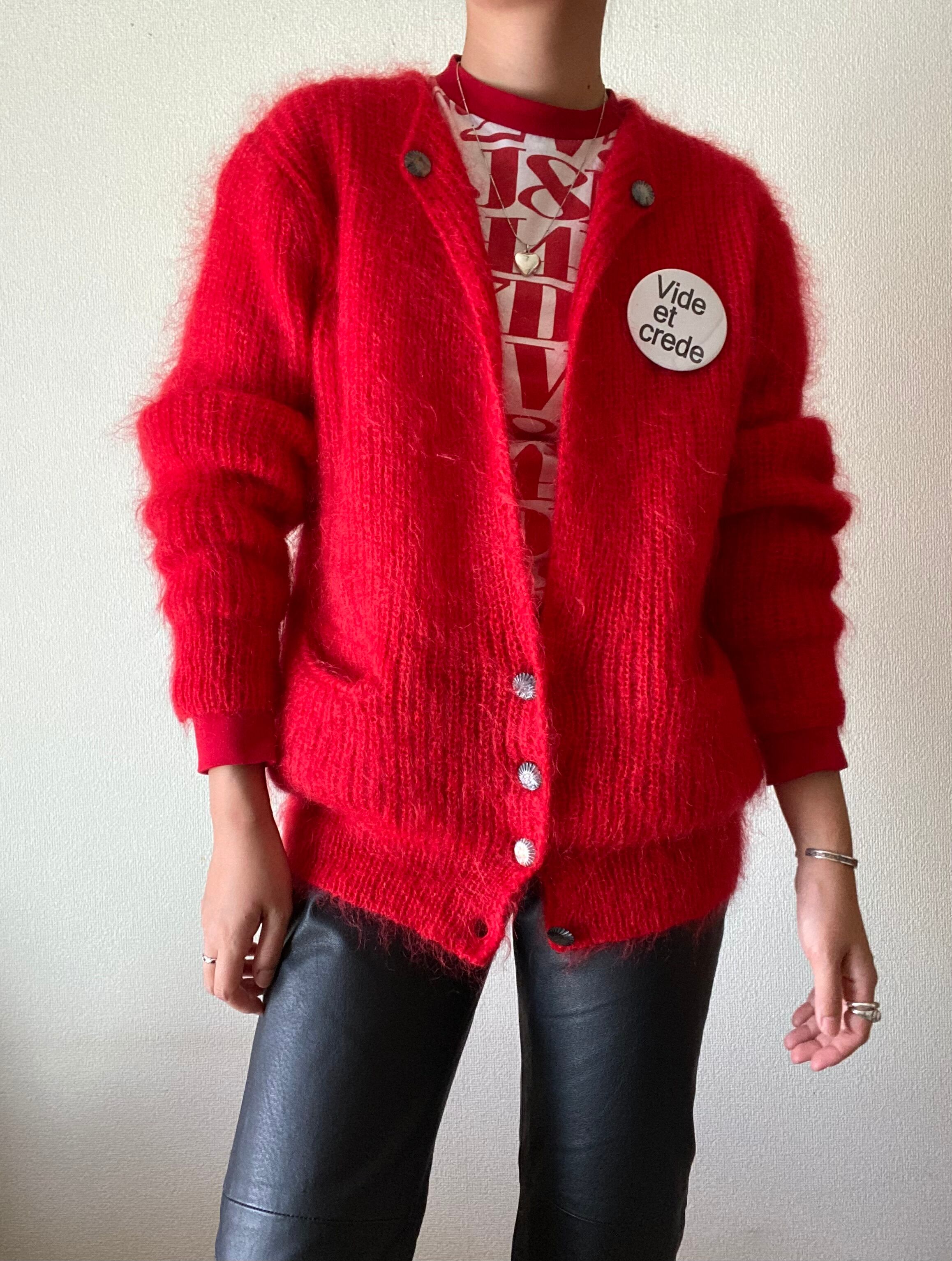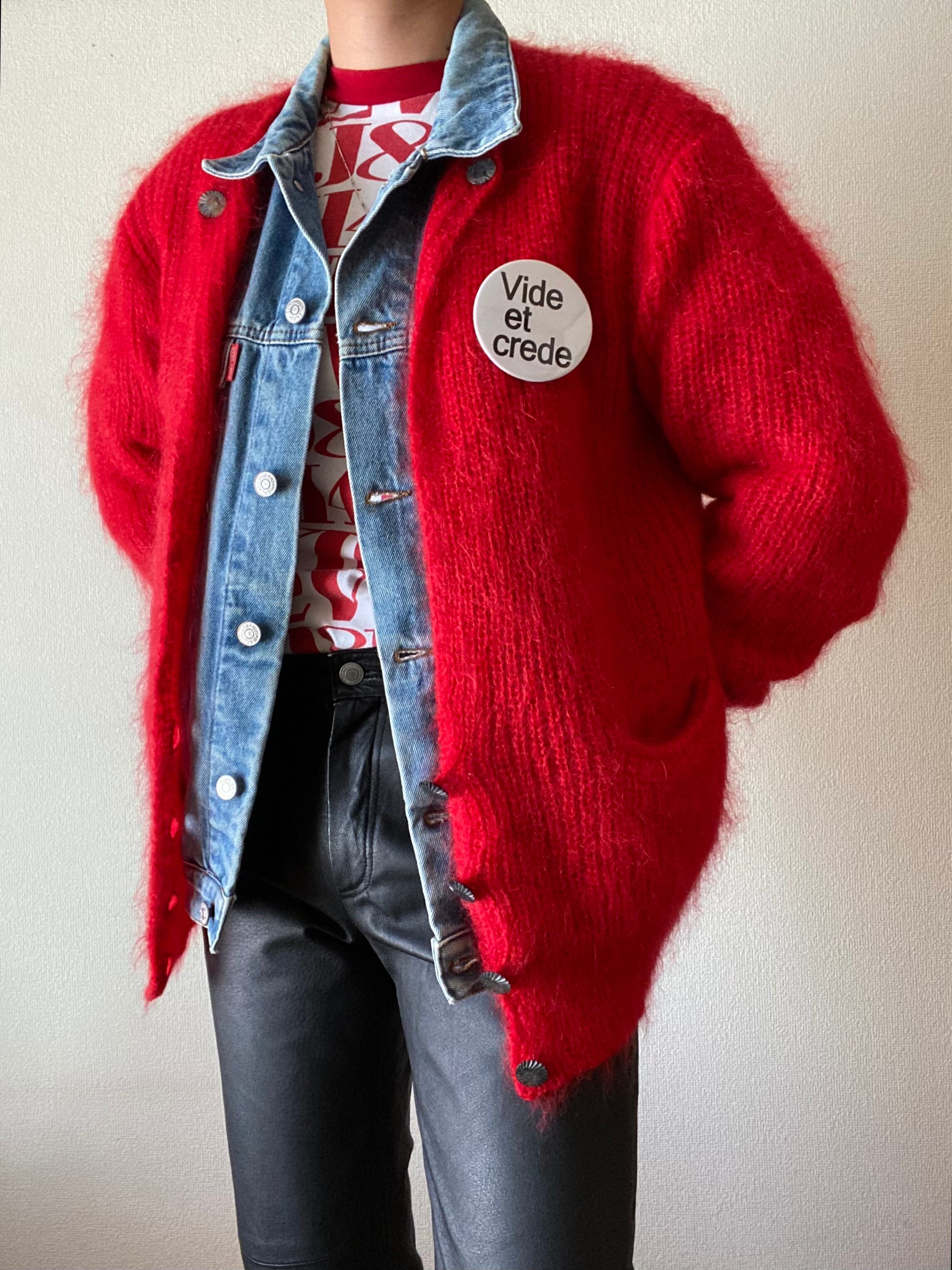 80s Vintage shaggy wool knit jacket design cardigan / 古着 ヴィンテージ シャギーニット セーター