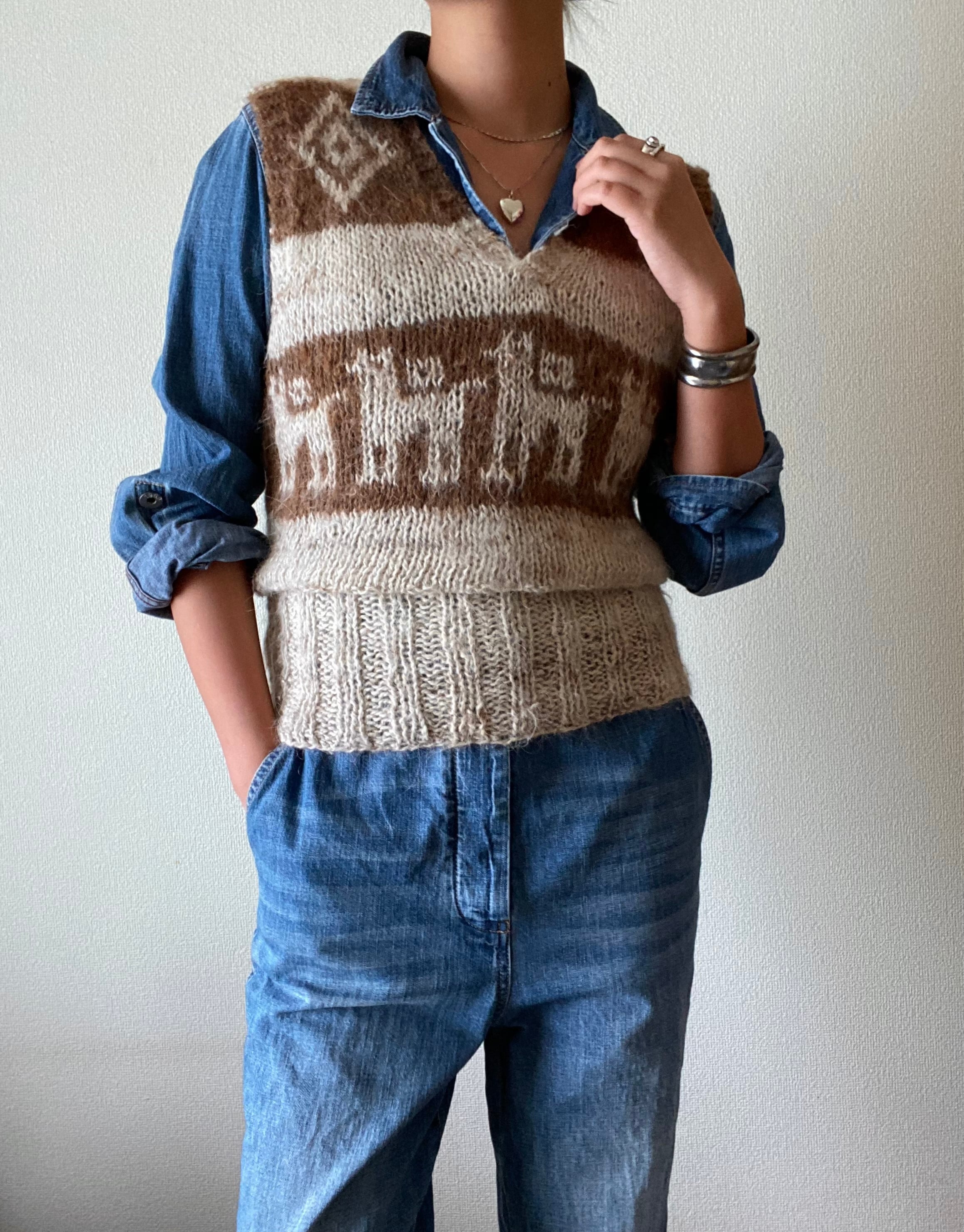 Vintage handknit alpaca nordic design vneck knit vest / 古着 ヴィンテージ ニットベスト