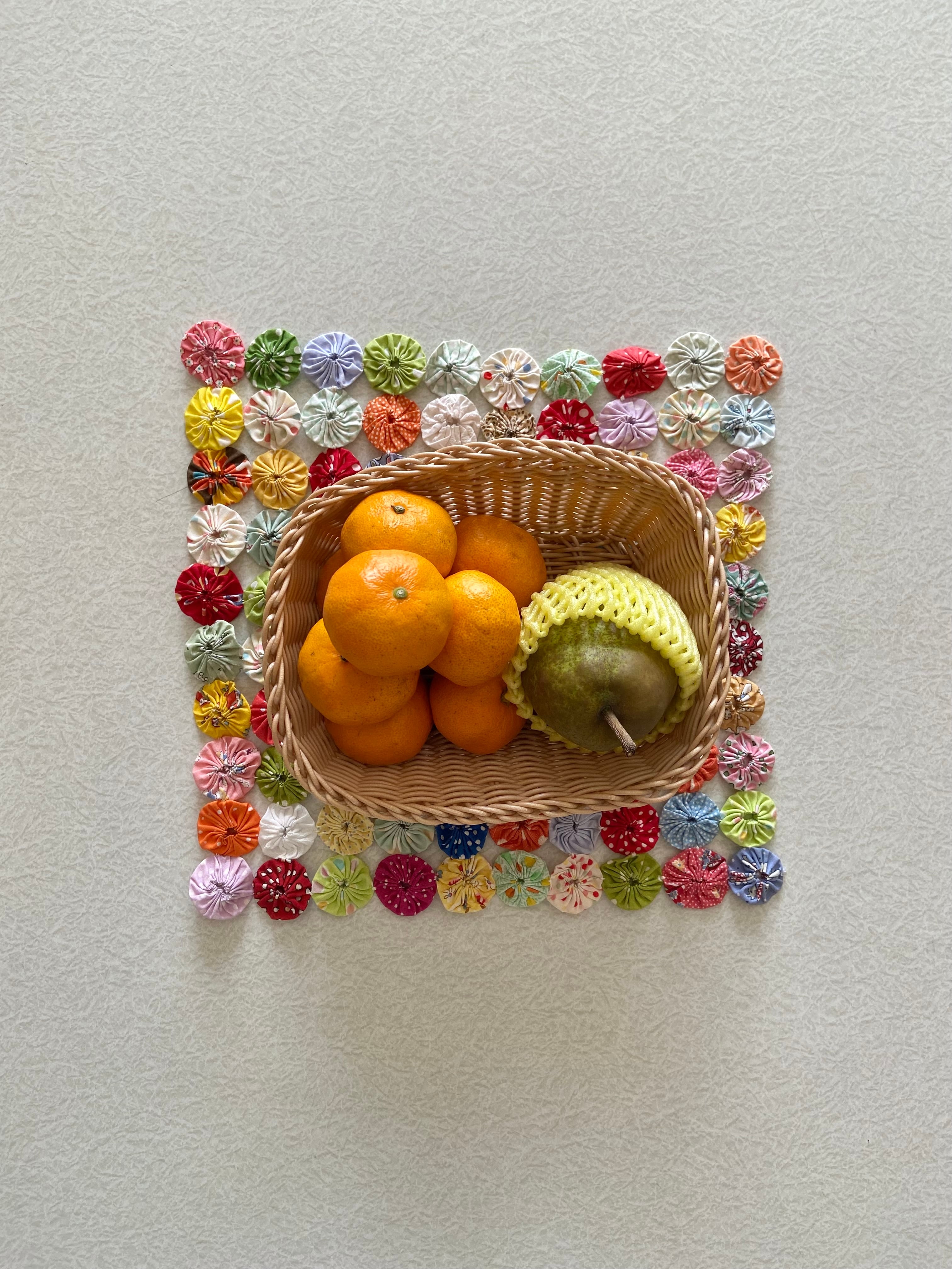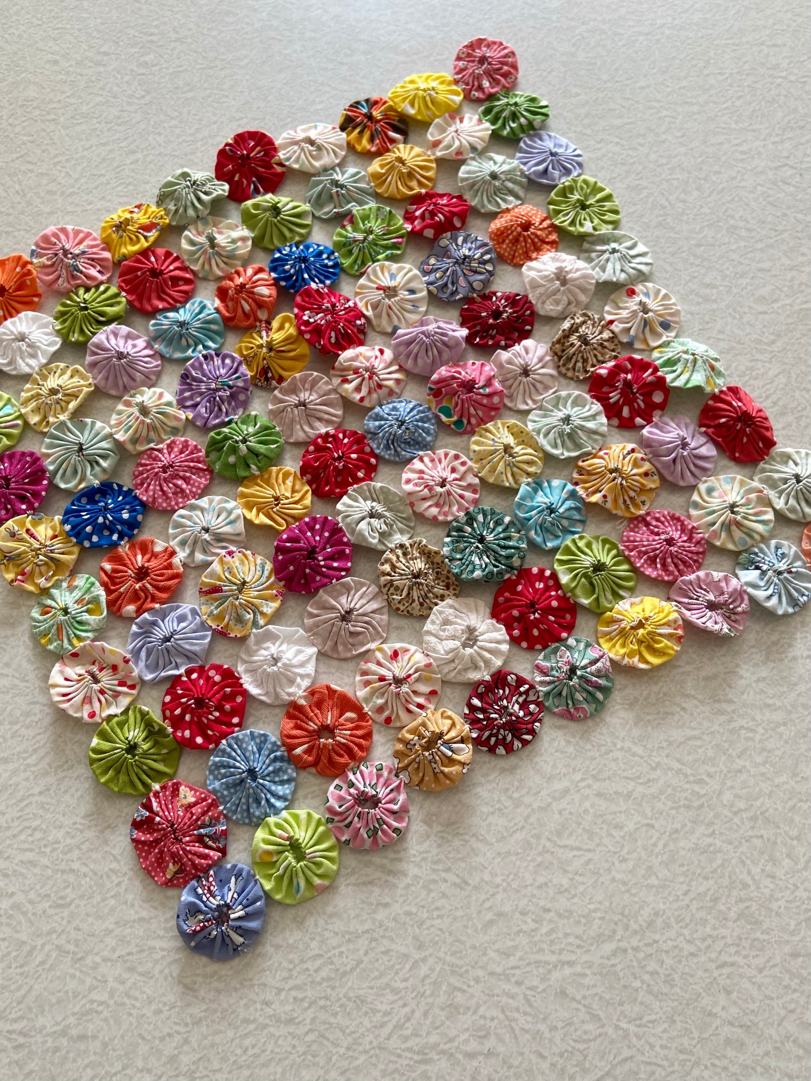 Vintage handmade yoyo quilt table mat / ヨーヨーキルト キルト ヴィンテージキルト