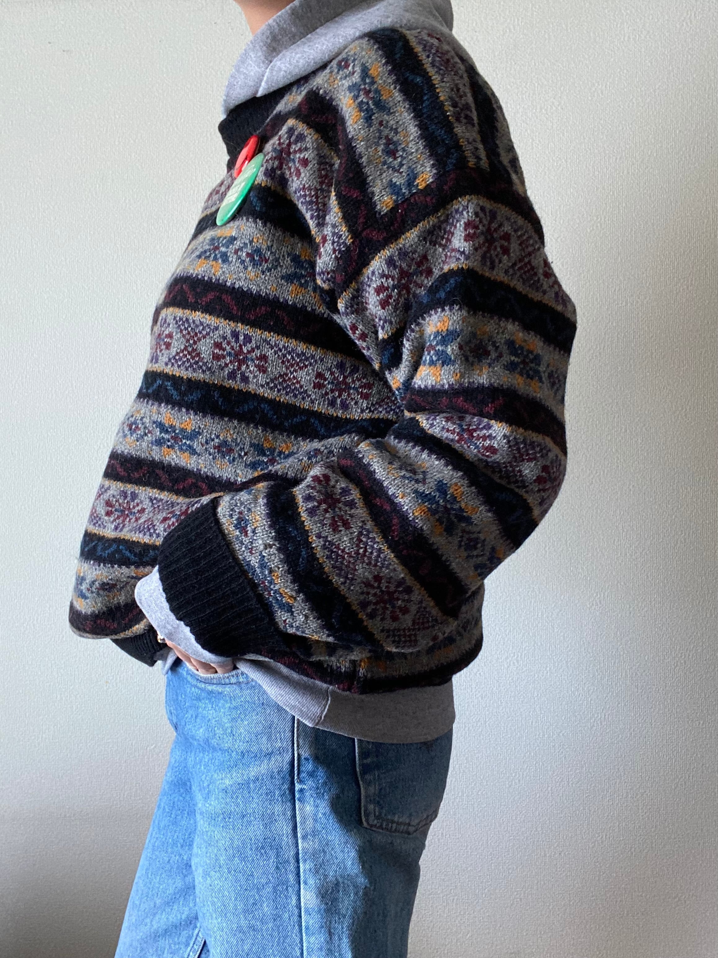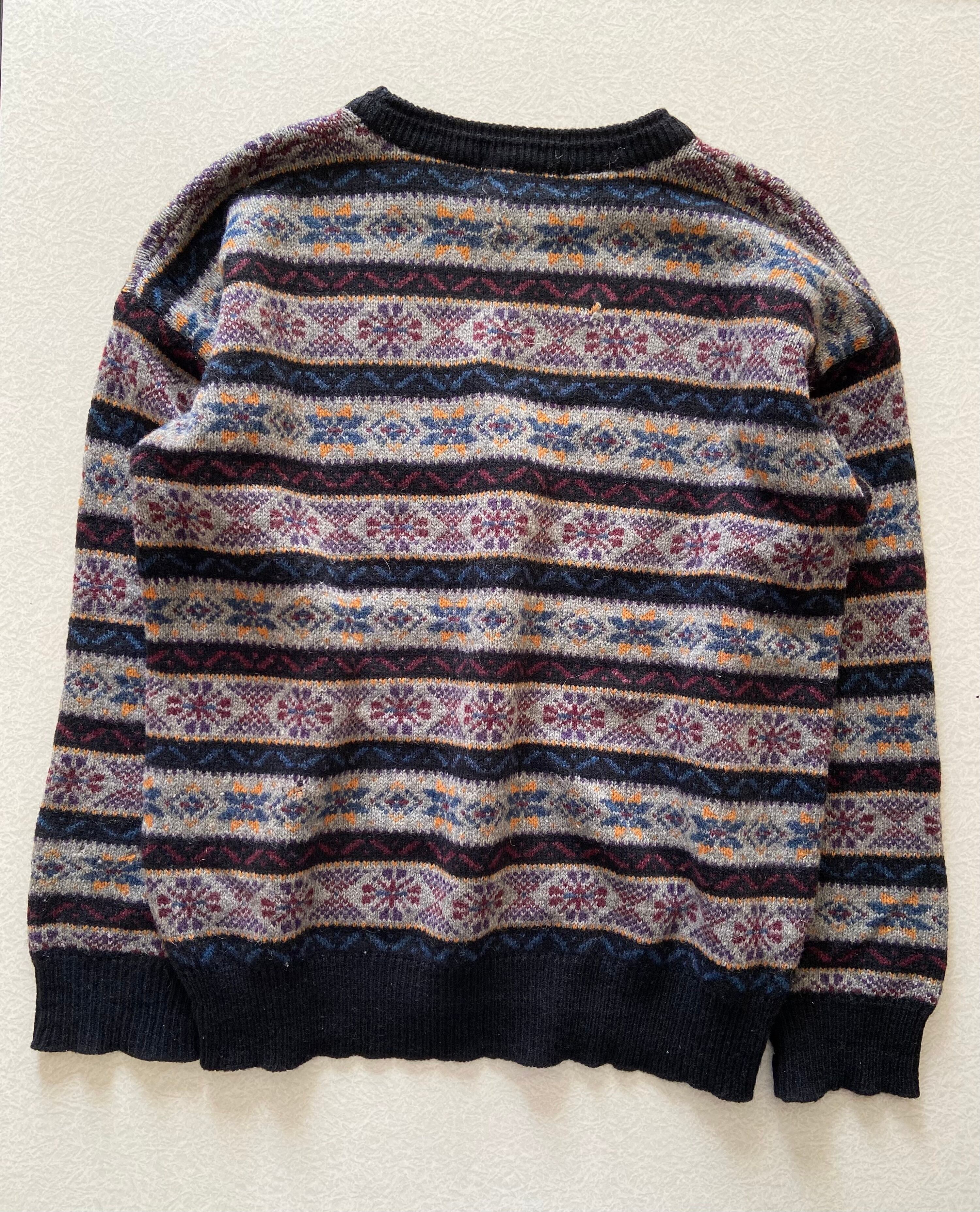 90s "INDIAN BOSS" nordic wool/acrylic sweater / 古着 ヴィンテージ ノルディックセーター 総柄セーター