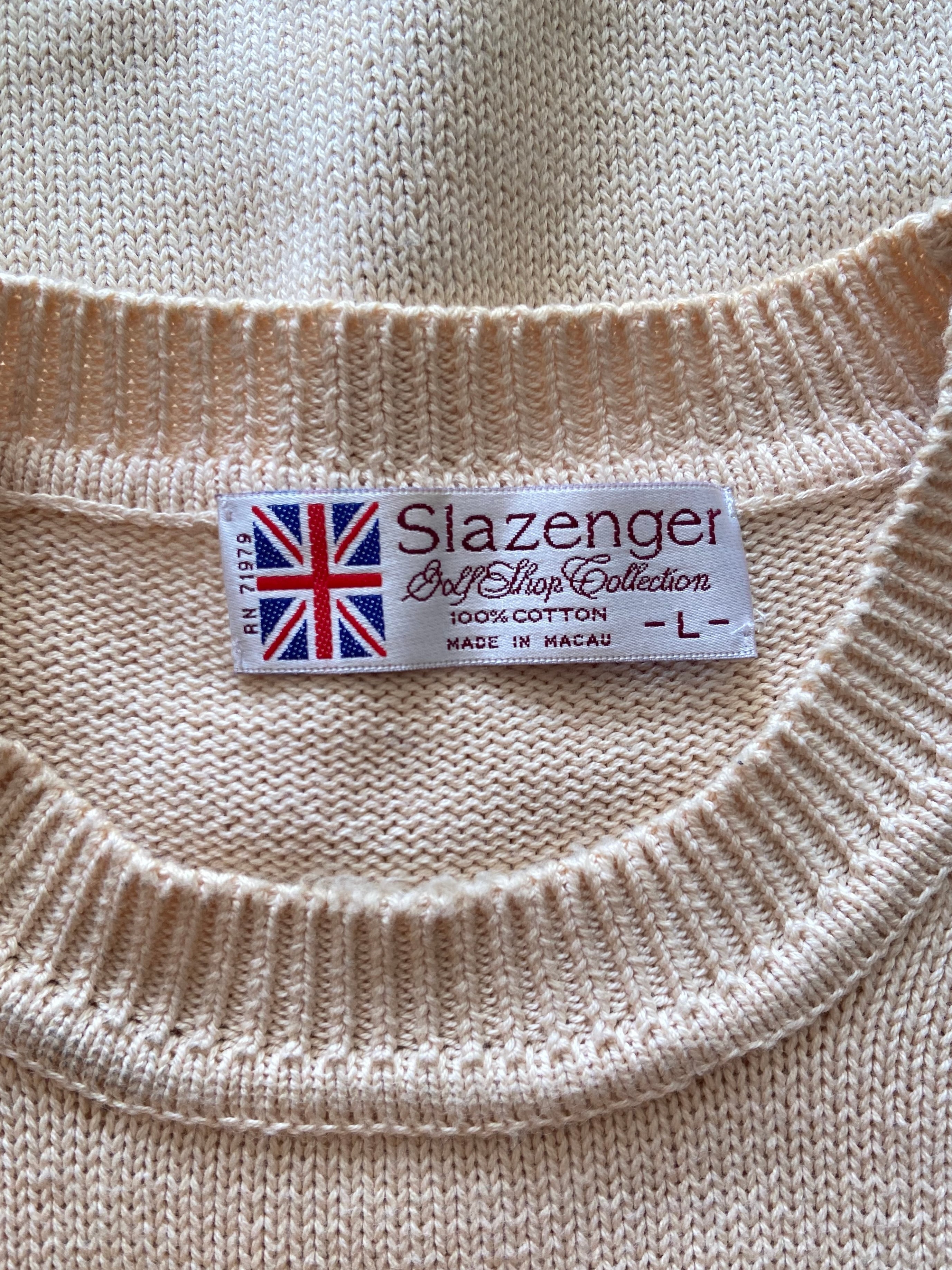 80s "Slazenger" golfman design cotton knit sweater / MADE IN MACAU / 古着 ヴィンテージ セーター コットンニット