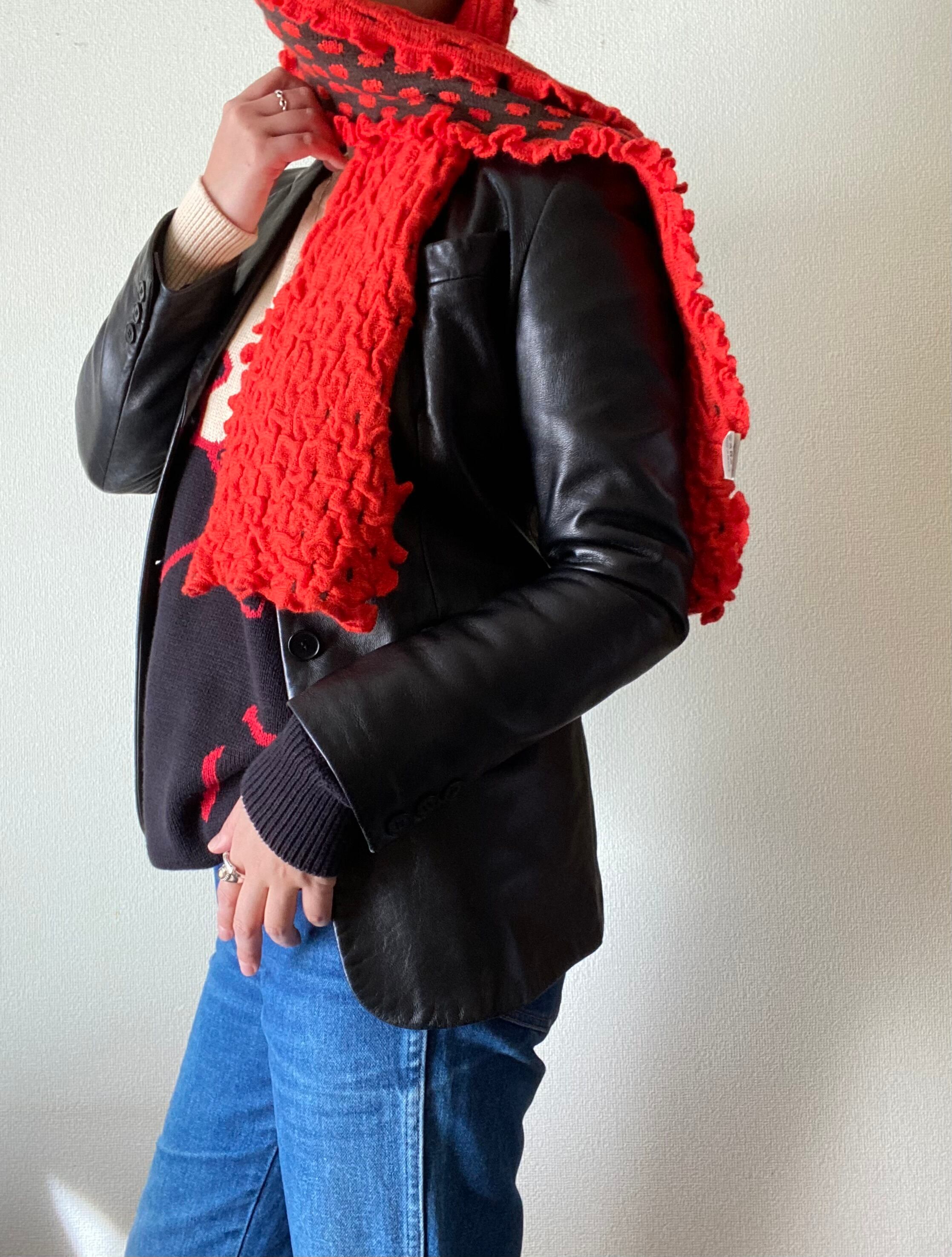 90-00s dot pattern & shirring design reversible muffler / MADE IN FRANCE / 古着 ヴィンテージ マフラー リバーシブル