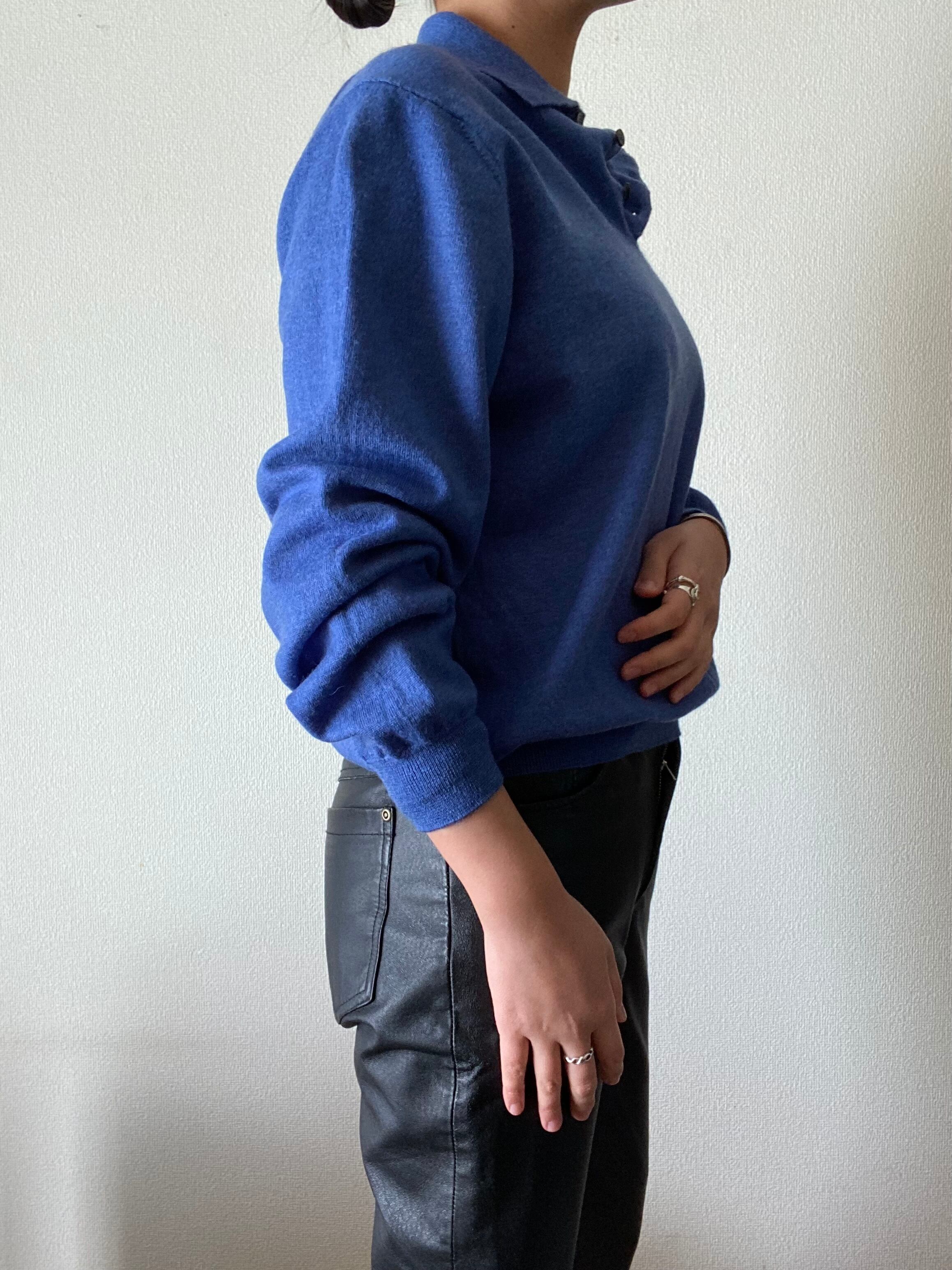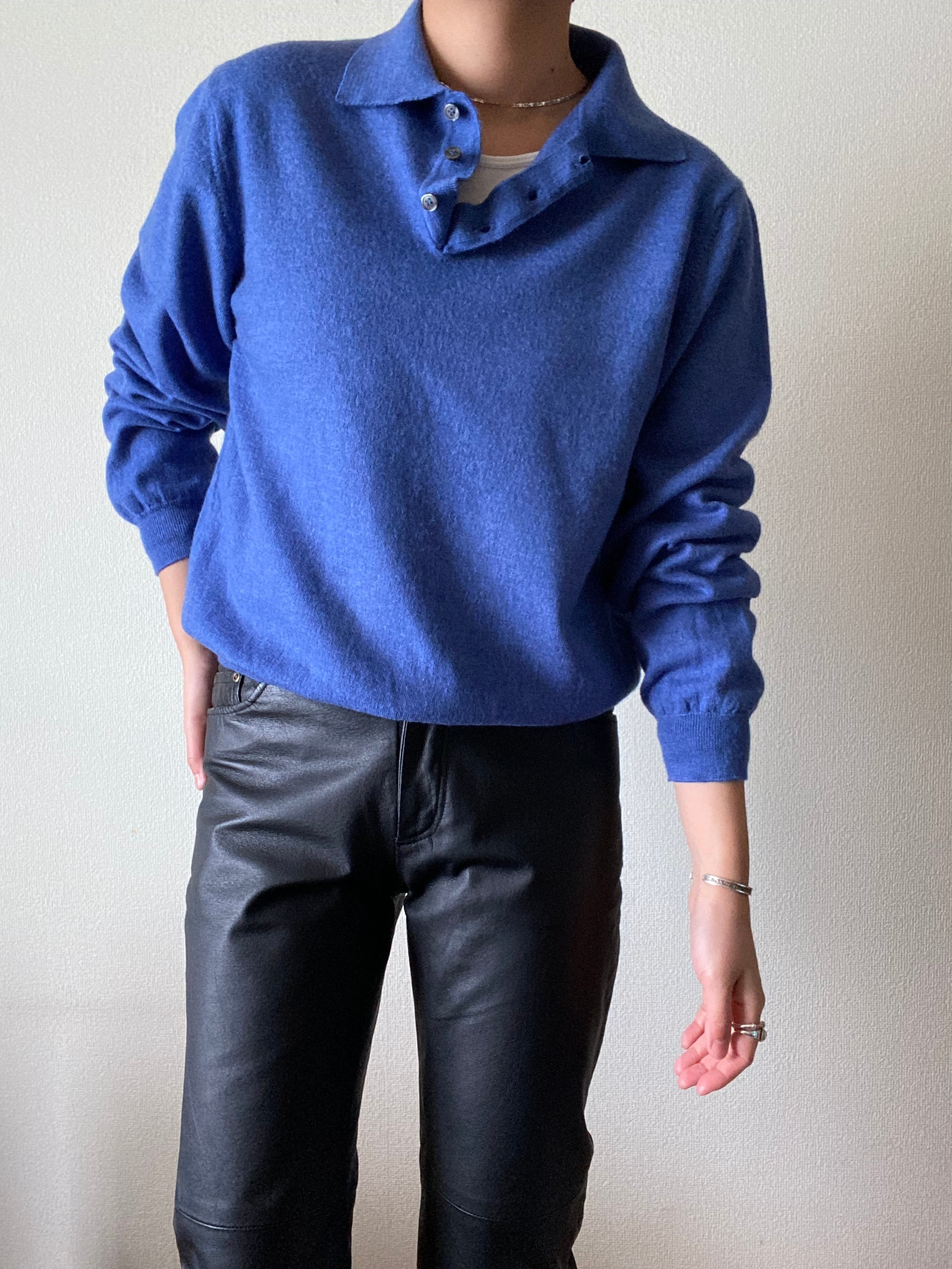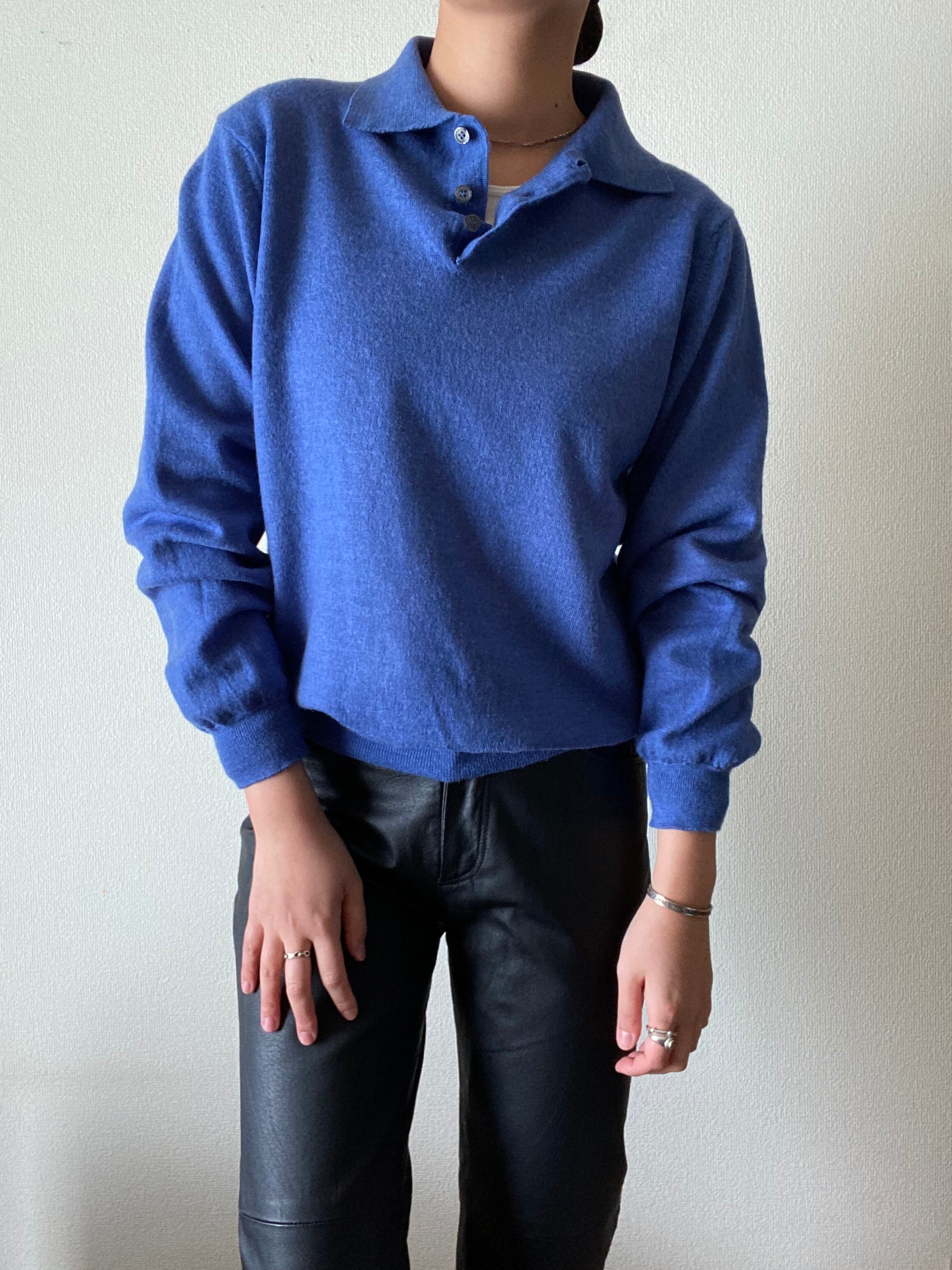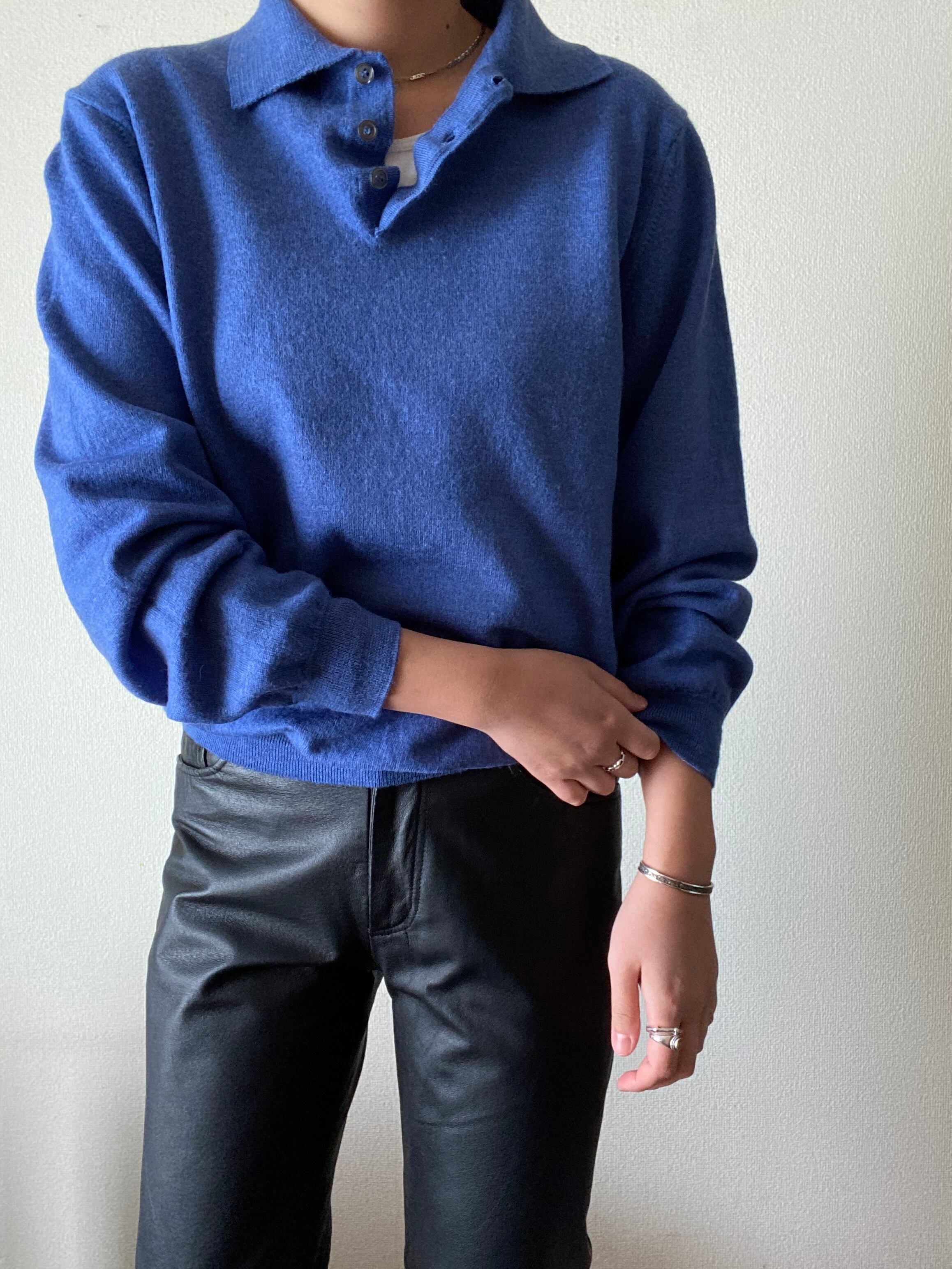 落ち着いたブルーが綺麗なニットポロシャツ。