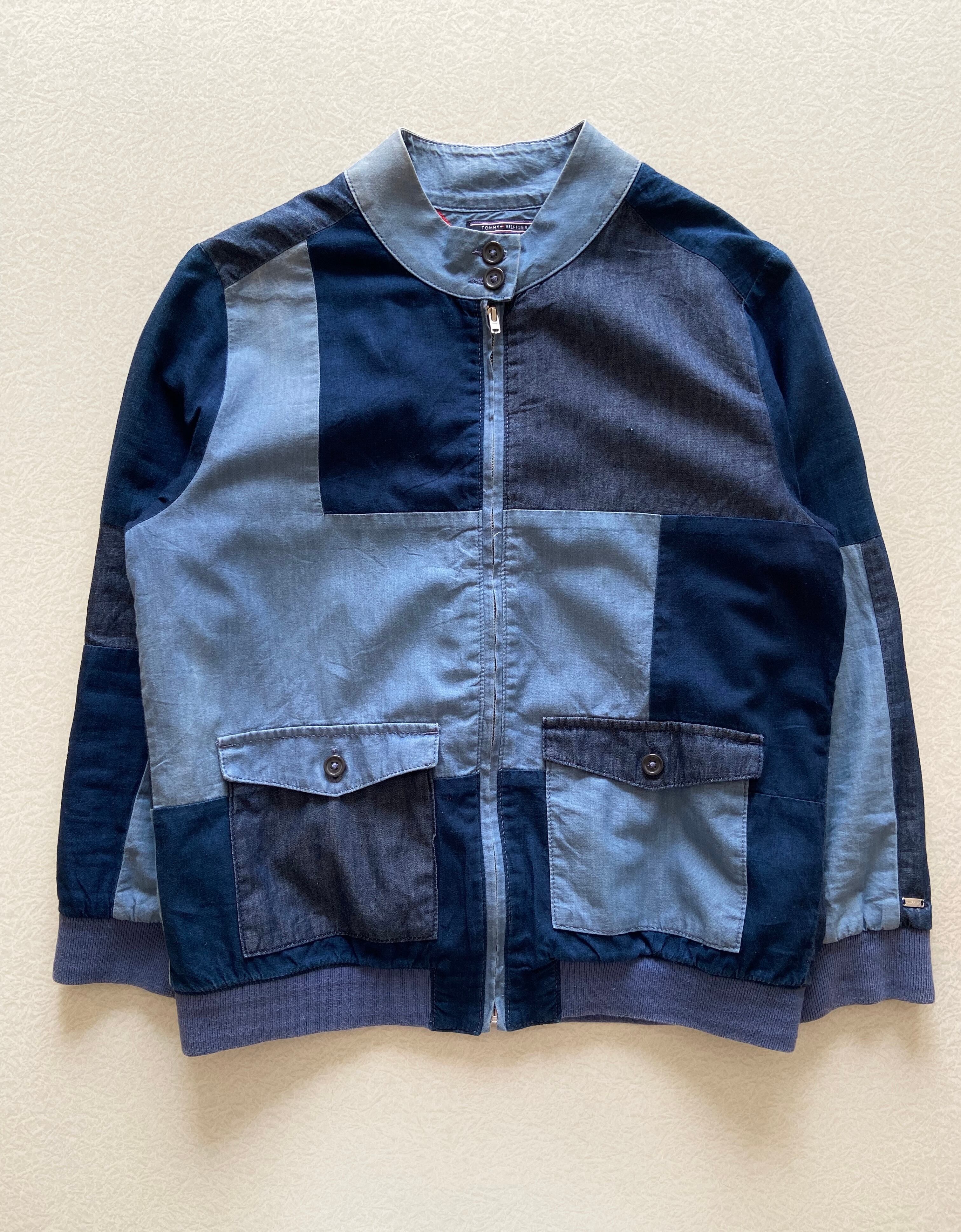 00s "TOMMY HILFIGER" patchwork design zip up jacket / MADE IN TURKEY / 古着 ヴィンテージ パッチワークジャケット トミーヒルフィガー
