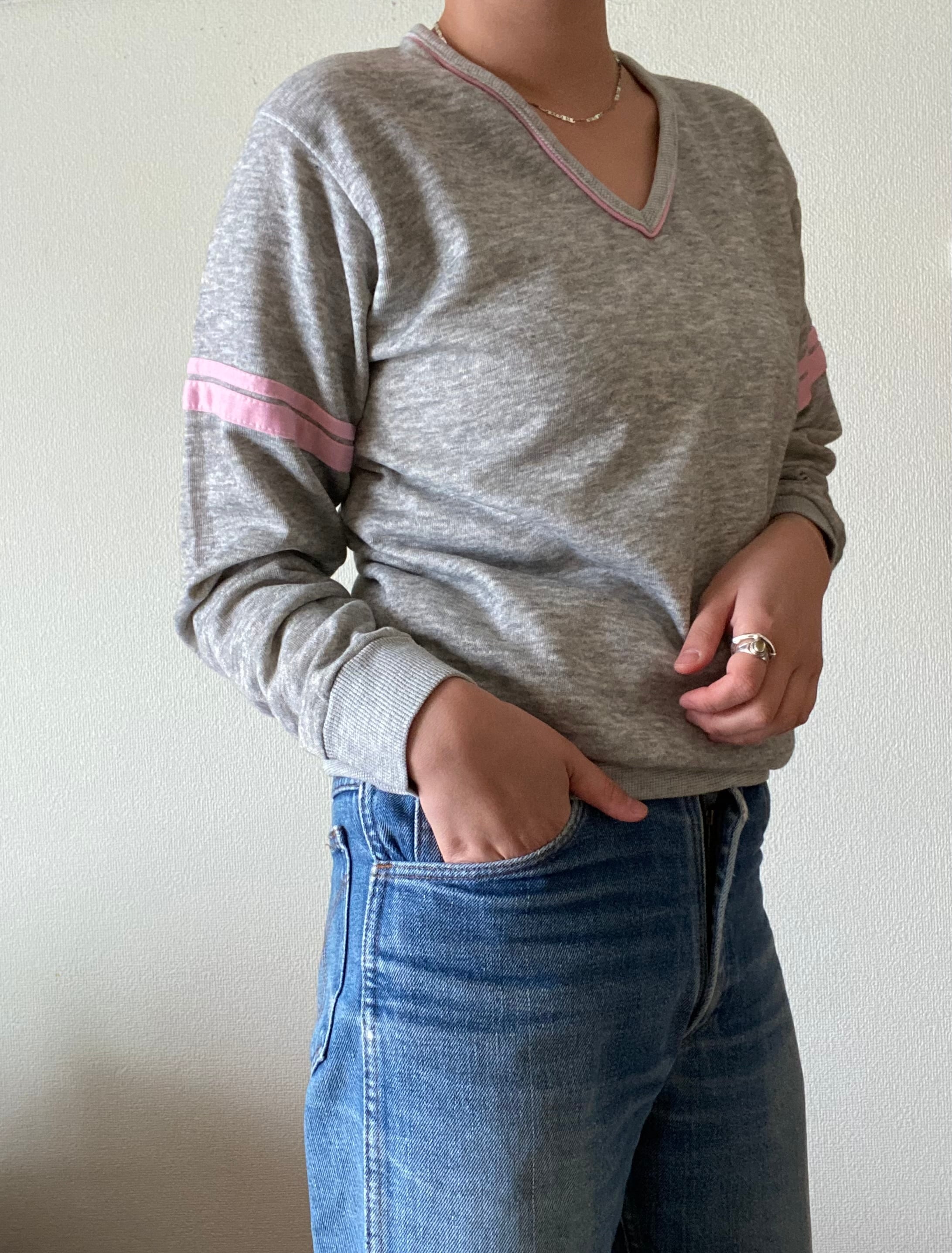 80s Vintage "BASSETT WALKER" vneck design sweatshirt / MADE IN USA / 古着 ヴィンテージ 無地スウェット Vネックスウェット