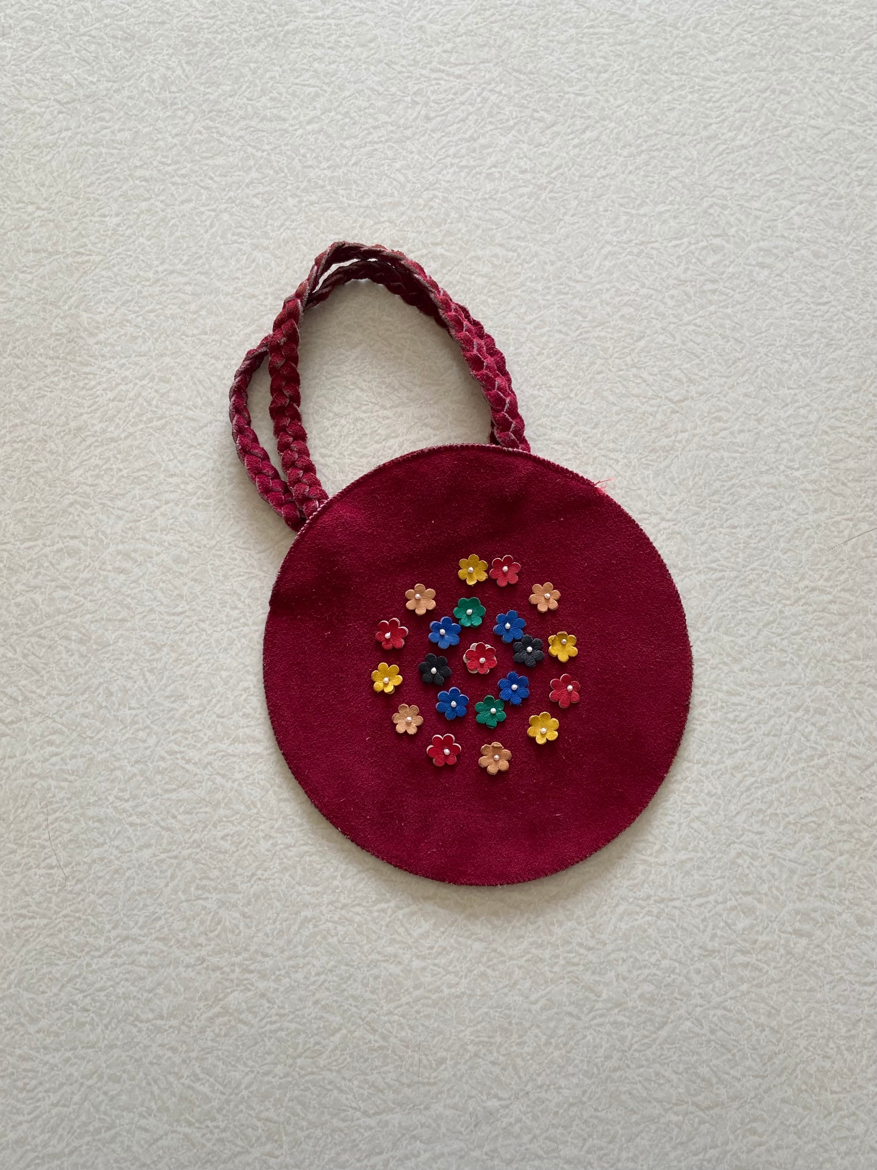 70s Vintage flower motif suede mini hand bag / 古着 ヴィンテージ スウェードバッグ