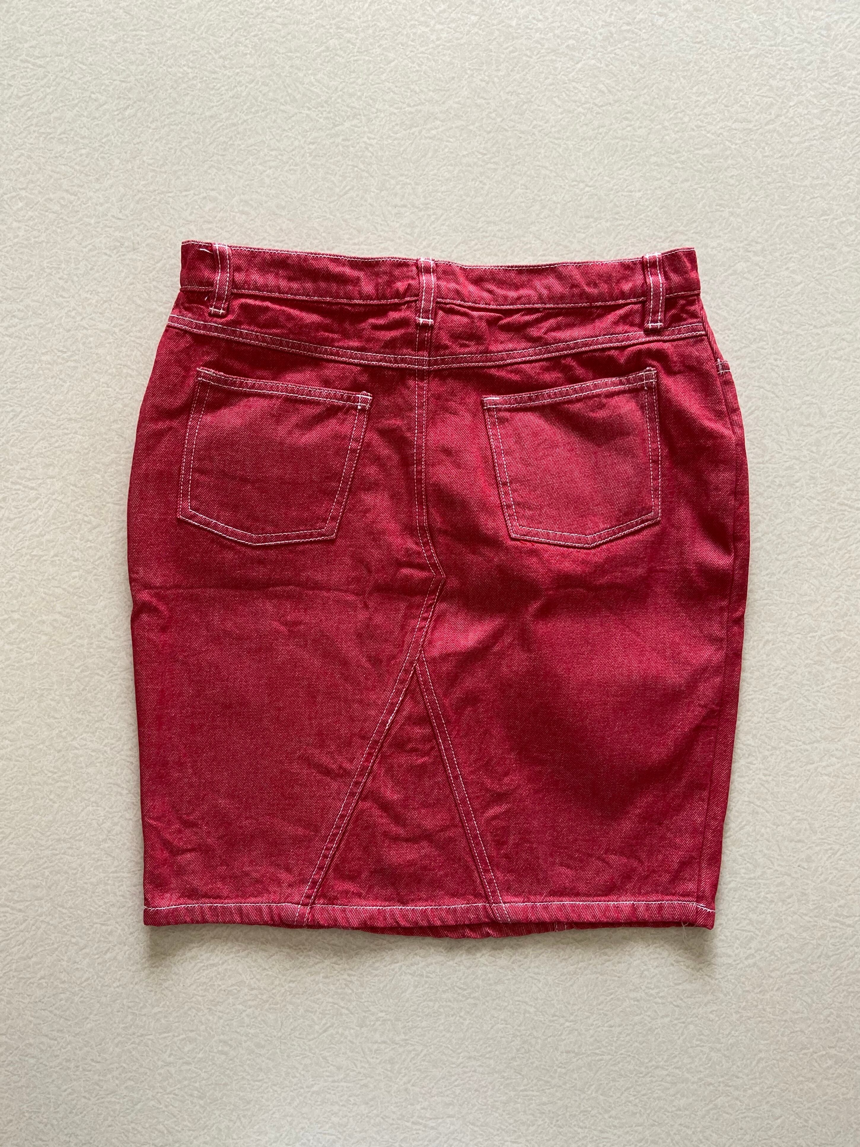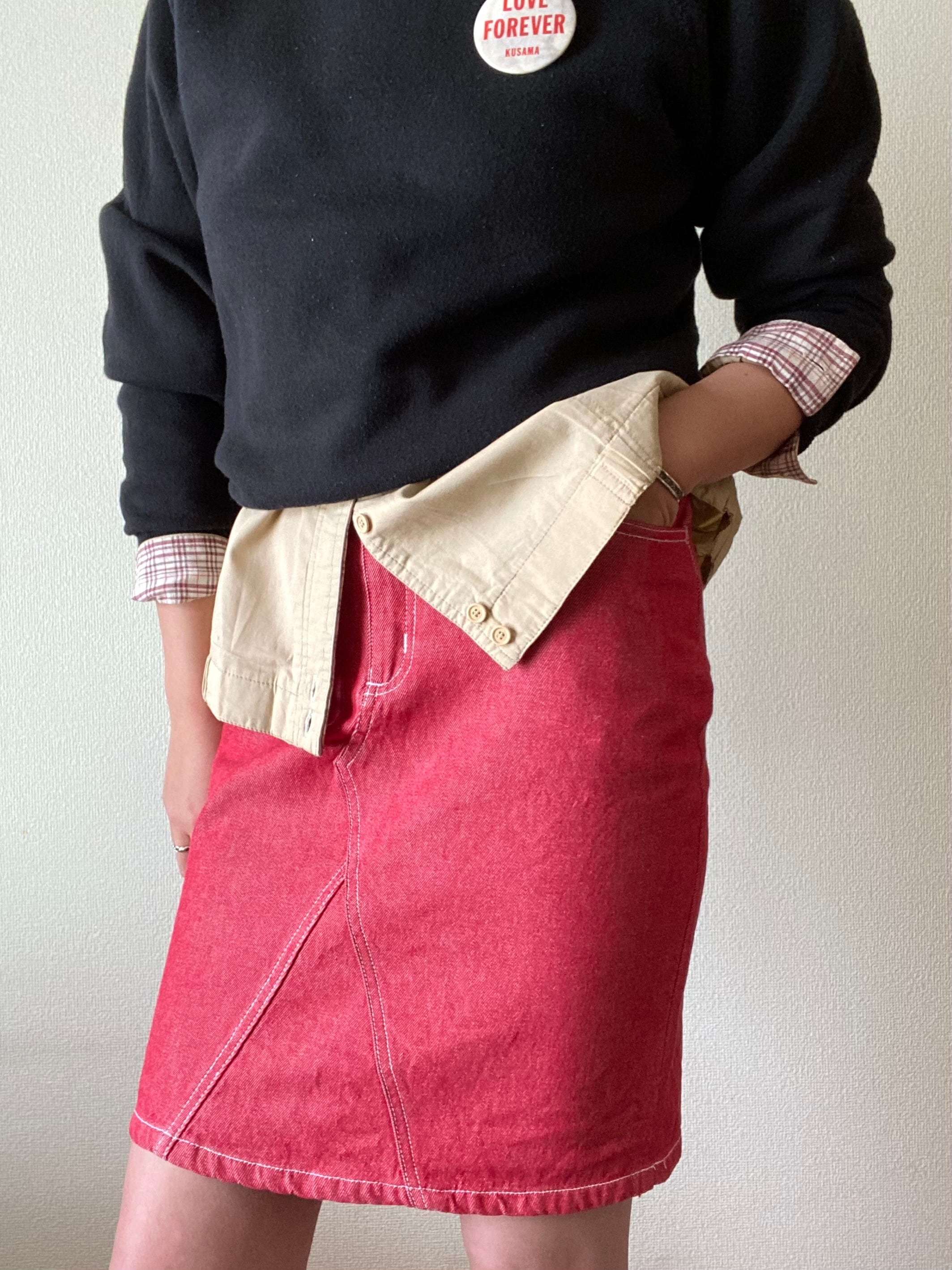 POPで鮮やかな赤が目を惹くデニムスカート◎