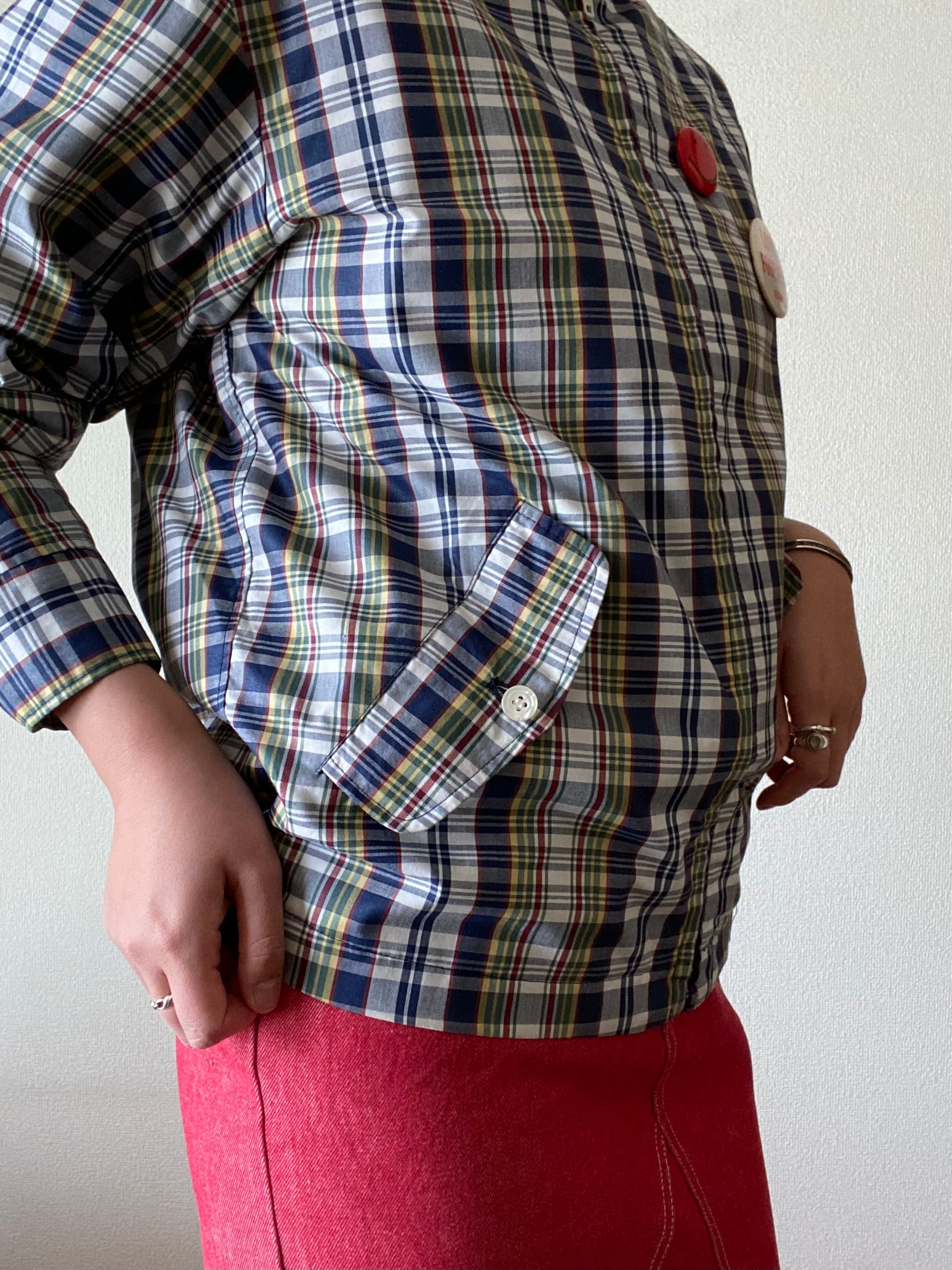 短めの着丈と程よくゆとりのある形が特徴的なチェック柄のドリズラージャケット。