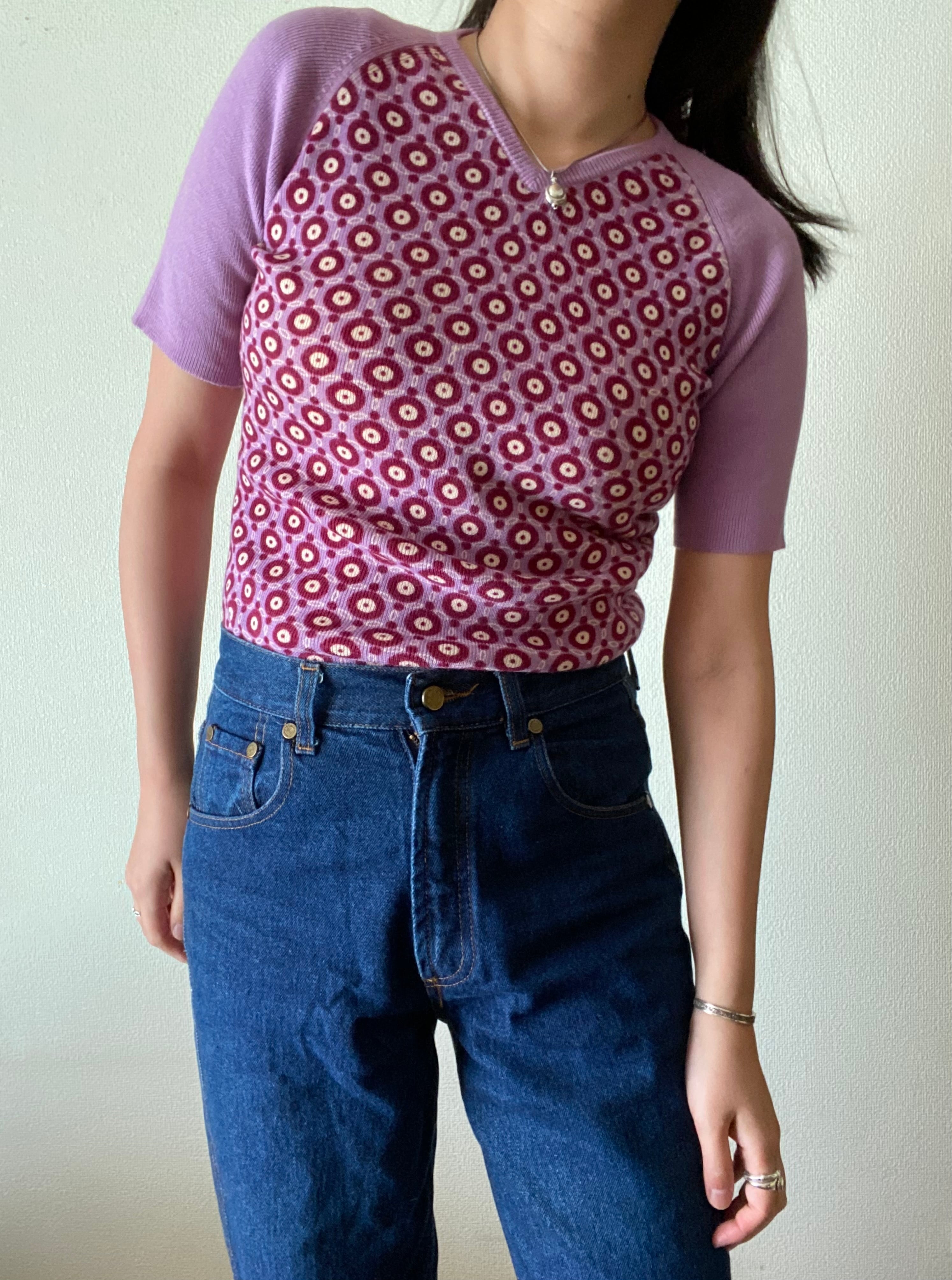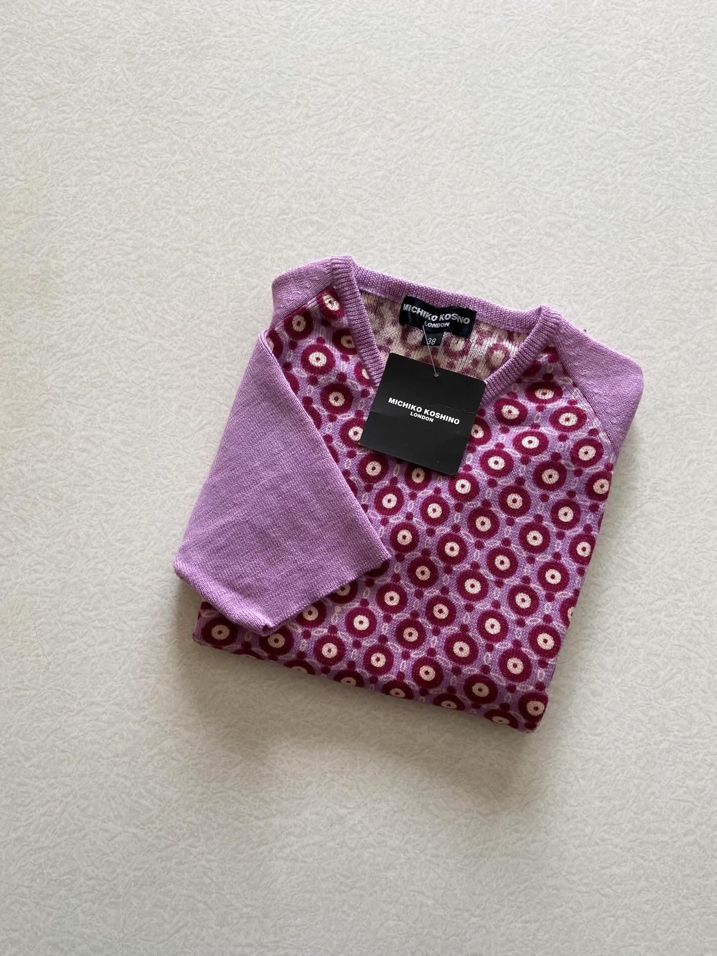 【Deadstock】90s "MICHIKO KOSHINO LONDON" psychedelic pattern short sleeve knit / 古着 ヴィンテージ 半袖ニット