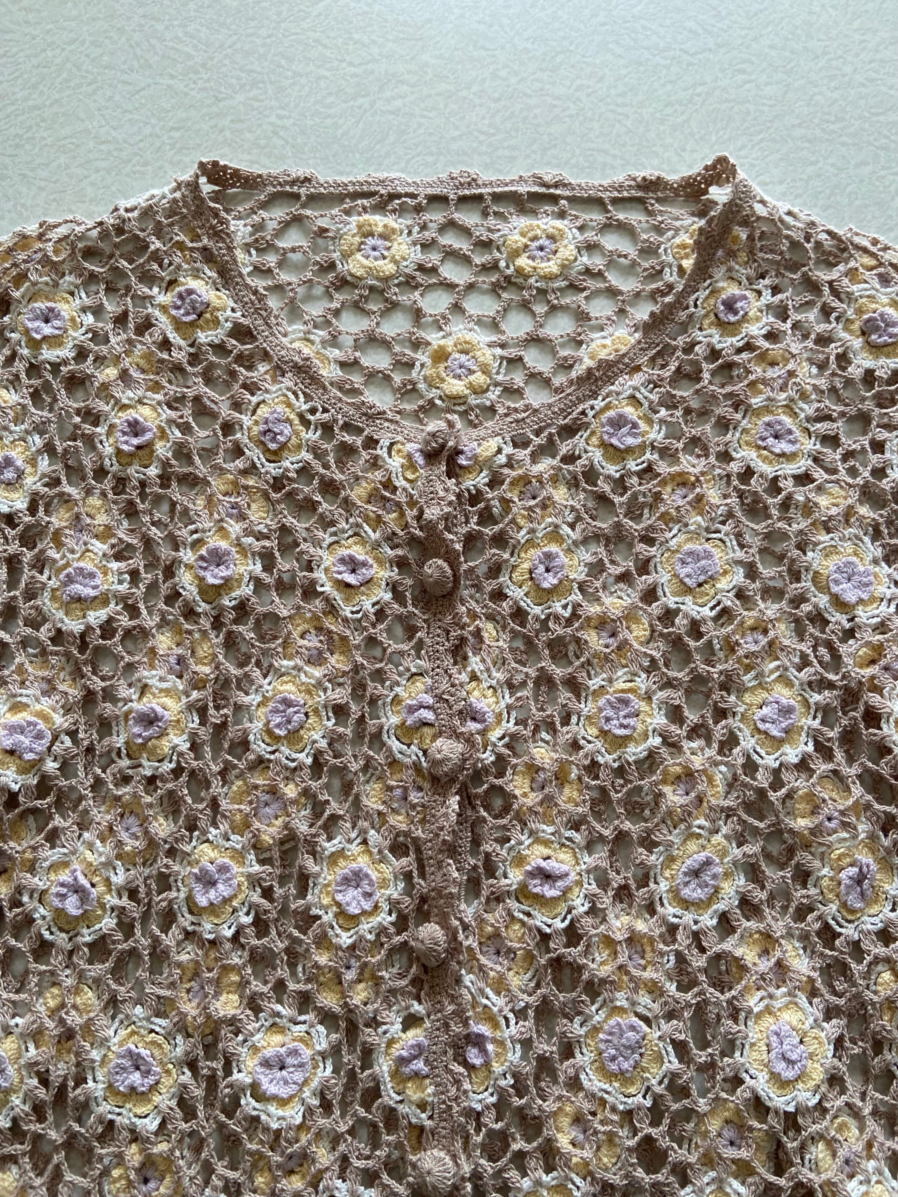 90-00s Crochet knit flower motif cotton cardigan / 古着 ヴィンテージ クロシェニット