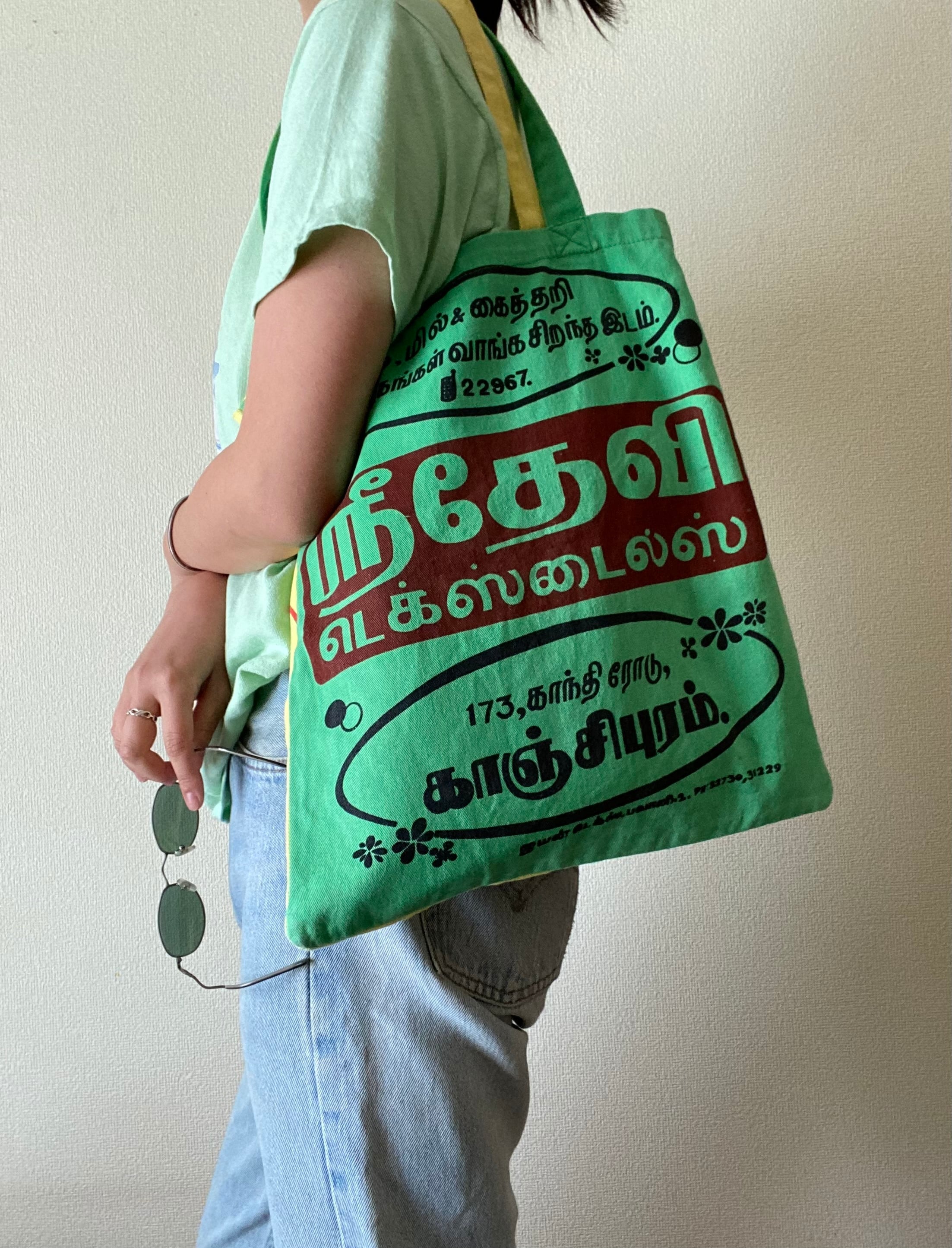 Used ethnic print bi-color tote bag / 古着 ヴィンテージ トートバッグ