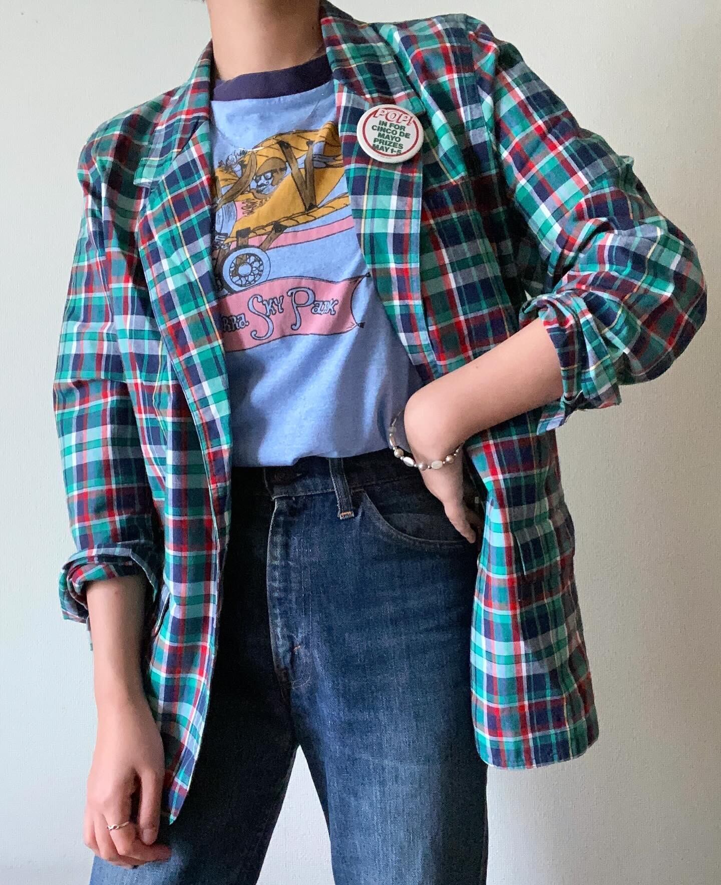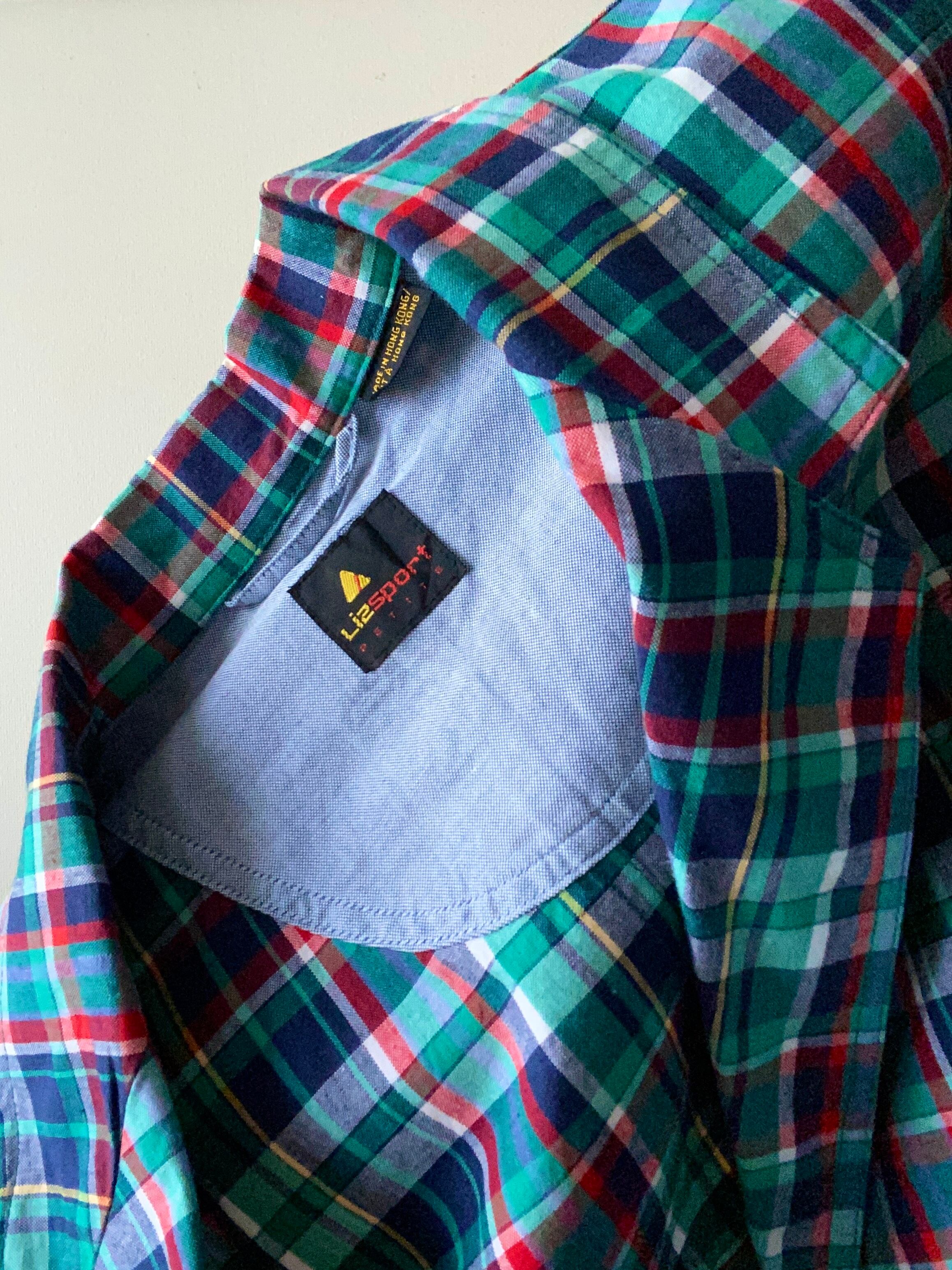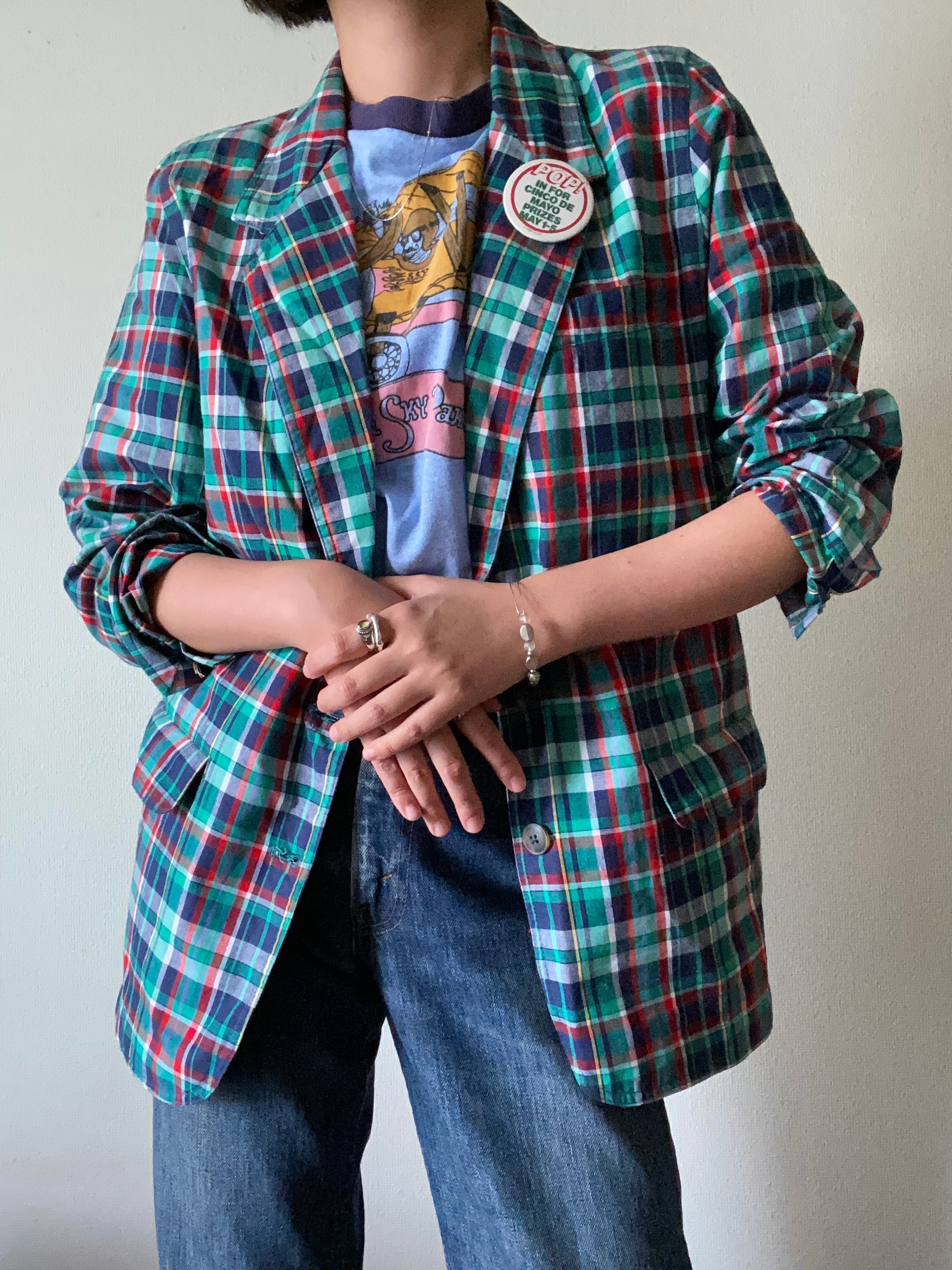 90s "Liz sport" check cotton tailored jacket / MADE IN HONGKONG / 古着 ヴィンテージ テーラードジャケット チェックジャケット