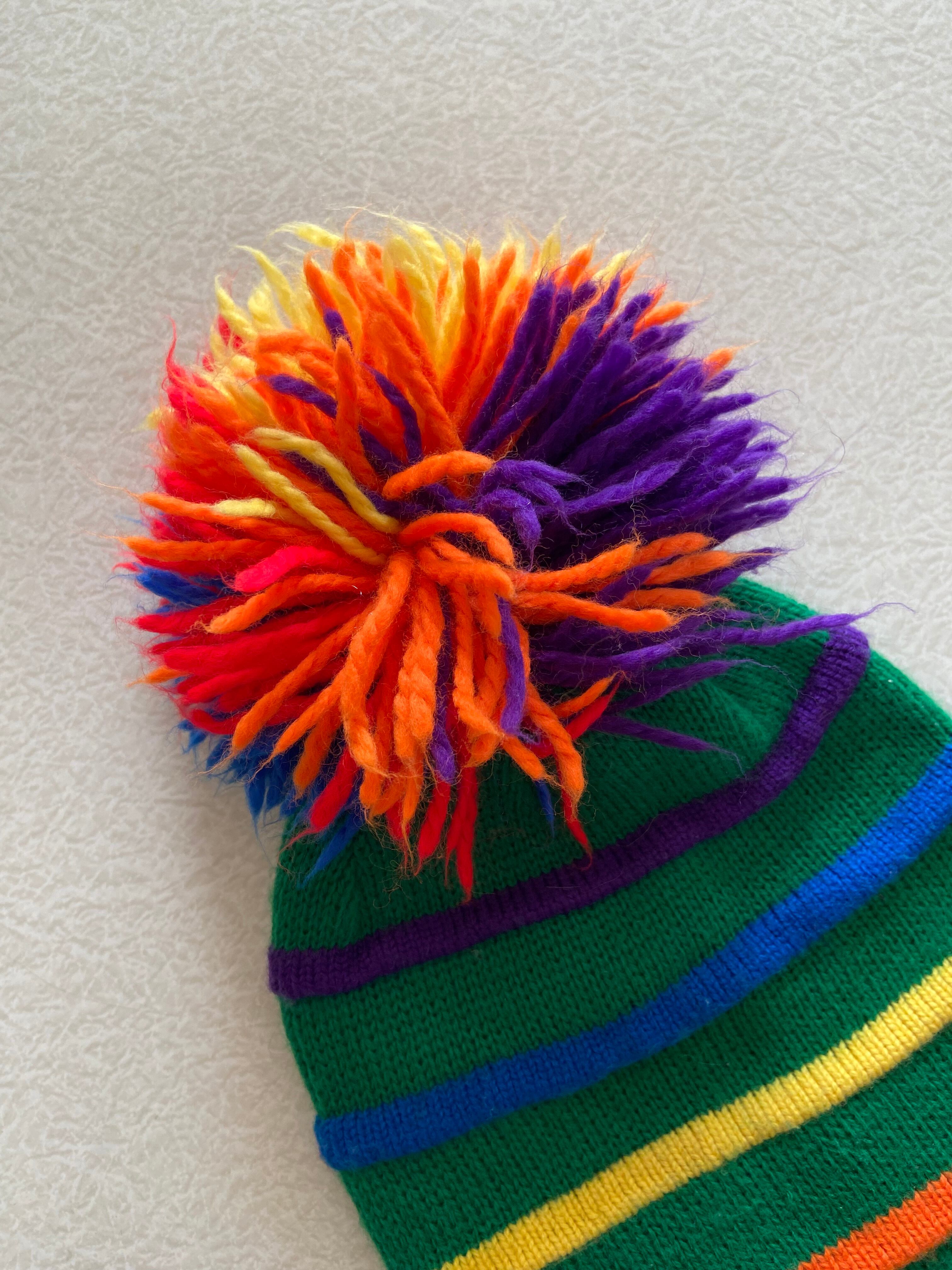90s unknown RAINBOW bobble beanie / 古着 ヴィンテージ ニット帽 ビーニー