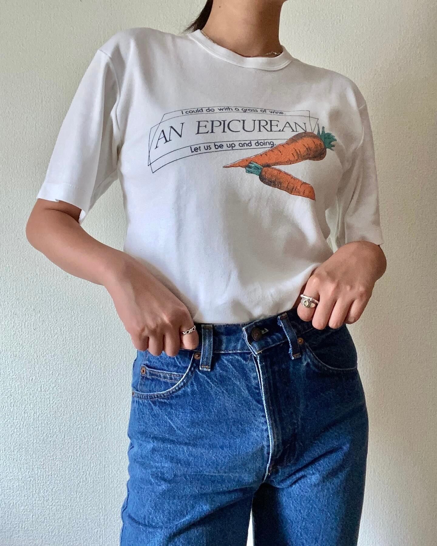 80-90s "AN EPICUREAN" print t-shirt / 古着 ヴィンテージ プリントTシャツ