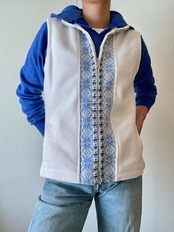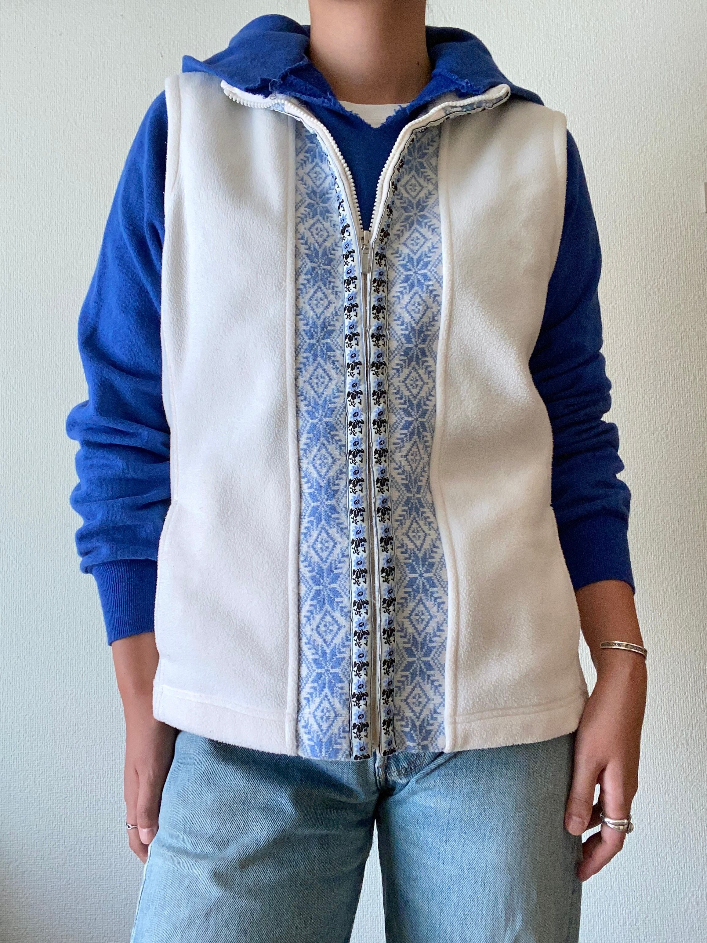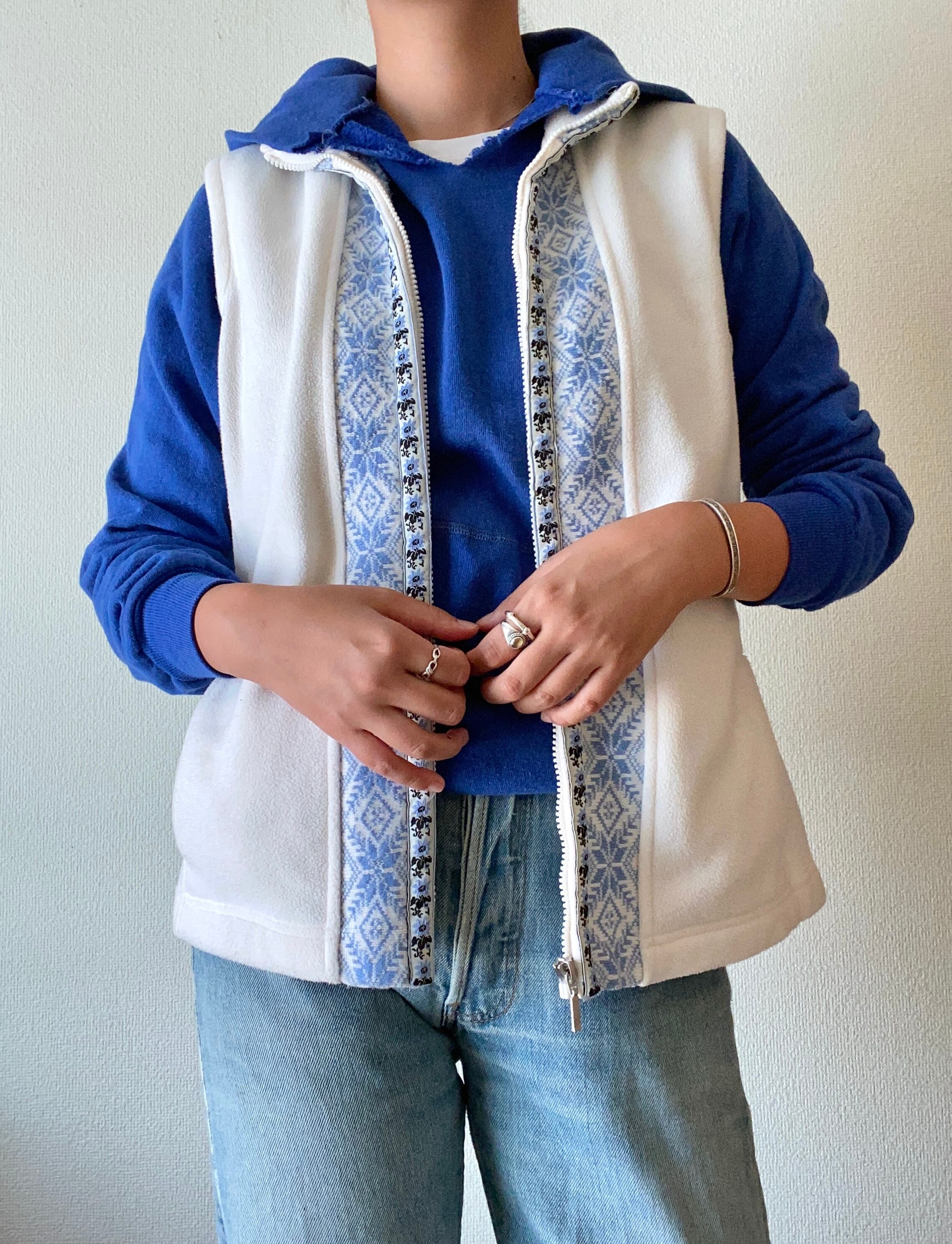 ジップ部分のノルディック柄が特徴的なフリースベスト。