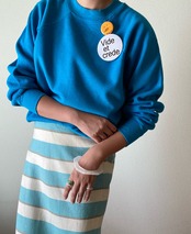 シンプルな無地のボディに鮮やかなブルーのが映えるラグランスウェット◎